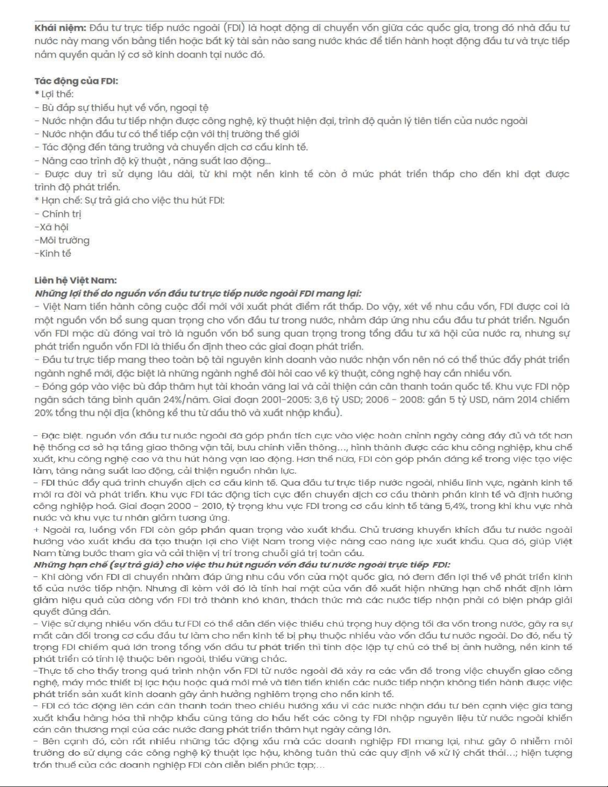76.Trình bày tác động của FDI .Liên hệ tác động của nguồn vốn này đến nền kinh tế Việt Nam. lOMoAR cPSD| 58702377 lOMoAR cPSD| 58702377