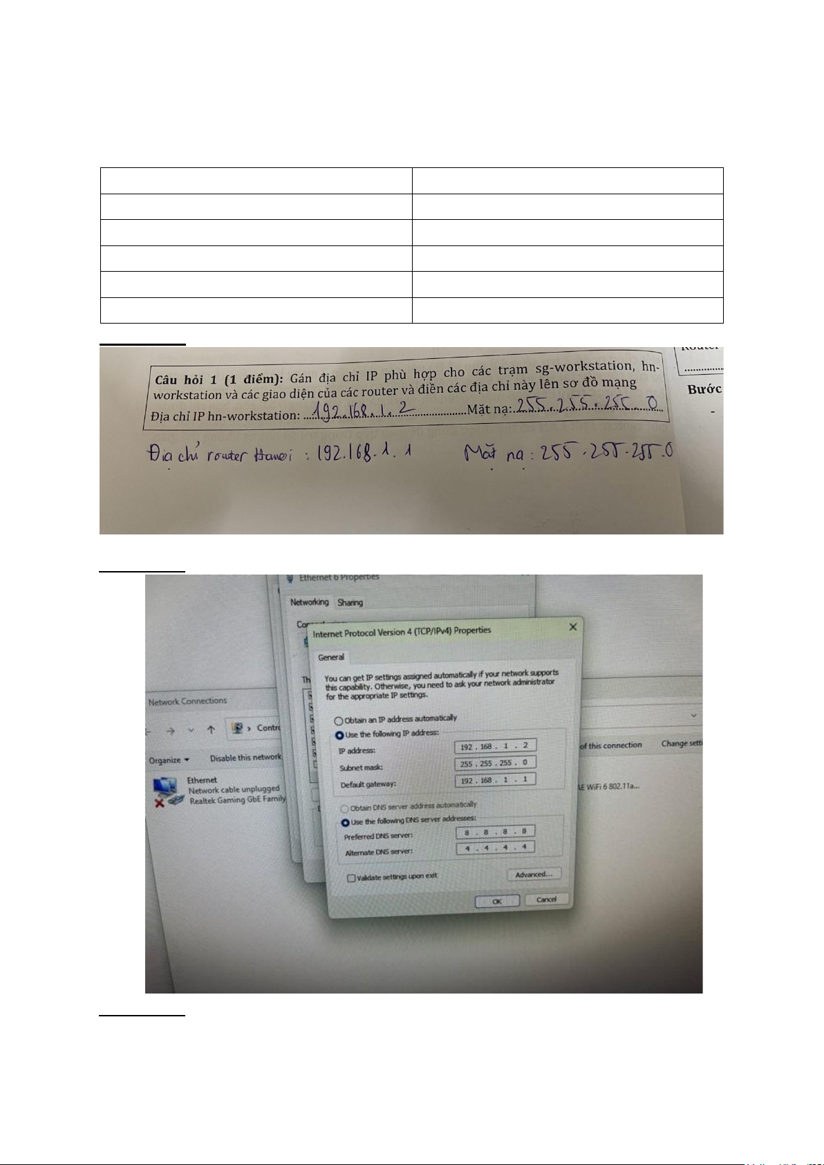 Câu hỏi 2: Gán địa chỉ IP cho máy PC1.