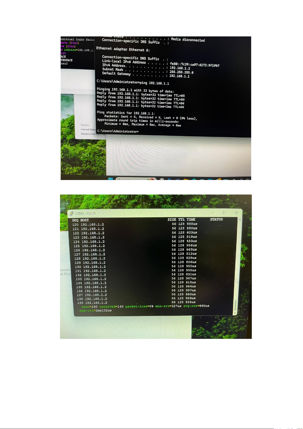 Câu hỏi 5: Ping PC1 đến router & ngược lại. PC1 đến router Router đến PC1