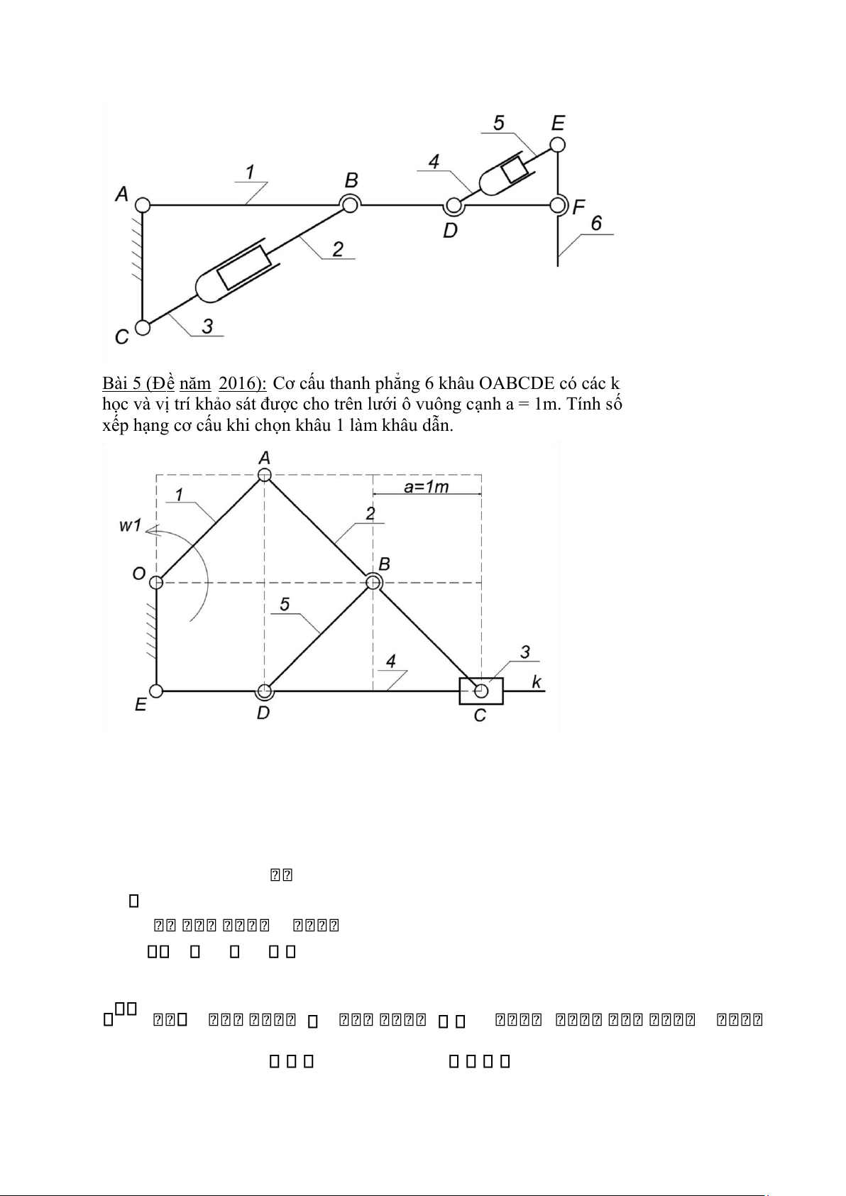 Bài 5 (Đ ề năm 2016): Cơ c ấ u thanh ph ẳ ng 6 khâu OABCDE có các kích thư ớ c đ ộ ng