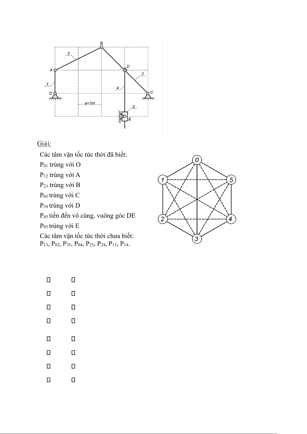 Áp dụng định lý Kenedy về ba tâm vận tốc tức thời, xác định các tâm vận tốc tức thời chưa biết: P13 P P01 03 P P12 23 P02 P P01 12 P P03 23 P35 P P03 05 P P34 45 P04 P P03 34 P P25 45 P25 P P02 05 P P23 35 P24 P P02 04 P P25 45 P15 P P01 05 P P13 35 P14 P P01 04 P P13 34