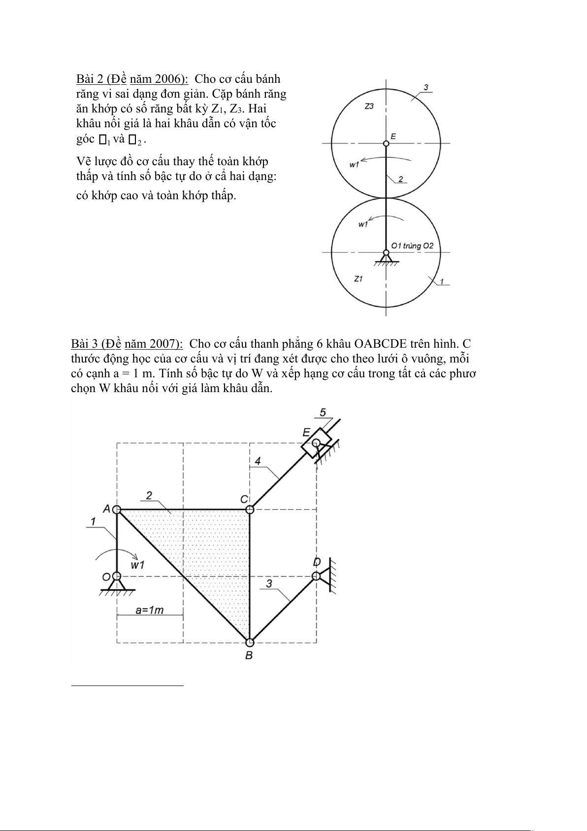 Bài 3 (Đ ề năm 2007): Cho cơ c ấ u thanh ph ẳ ng 6 khâu OABCDE trên hình. Các kích