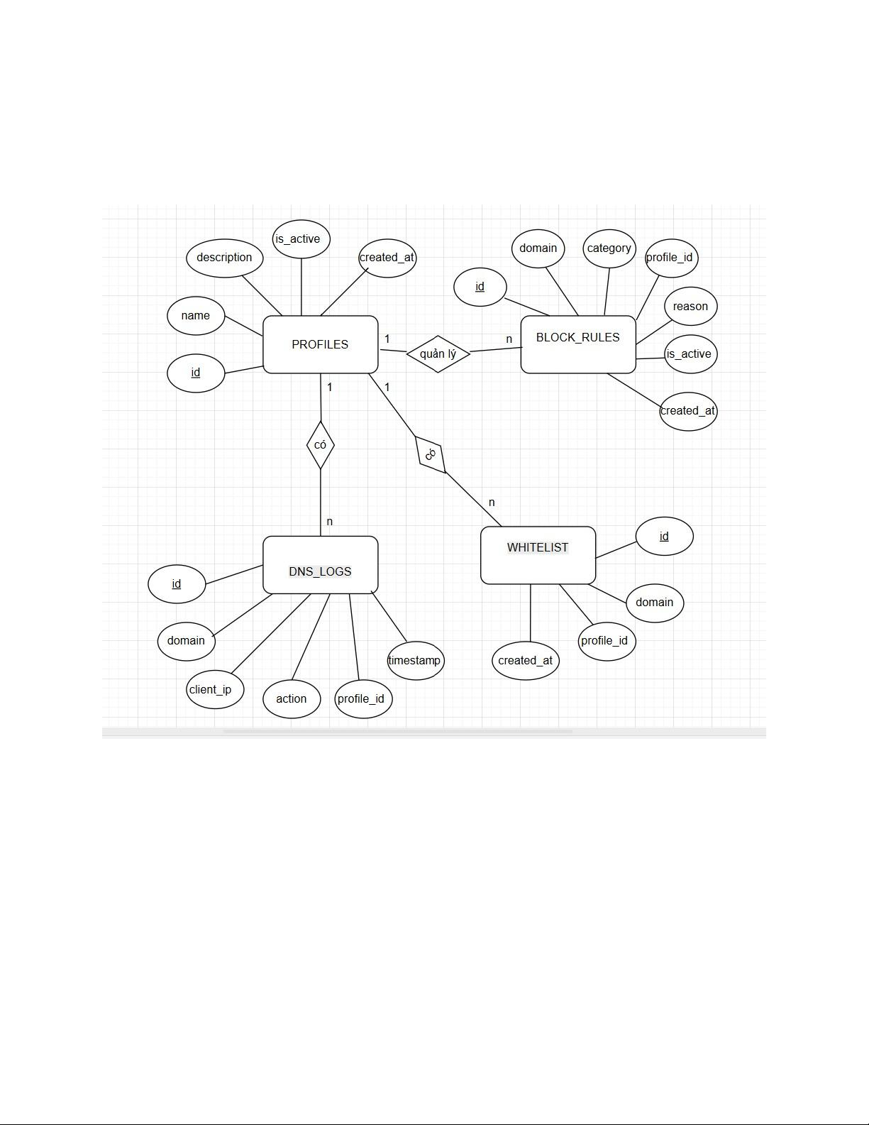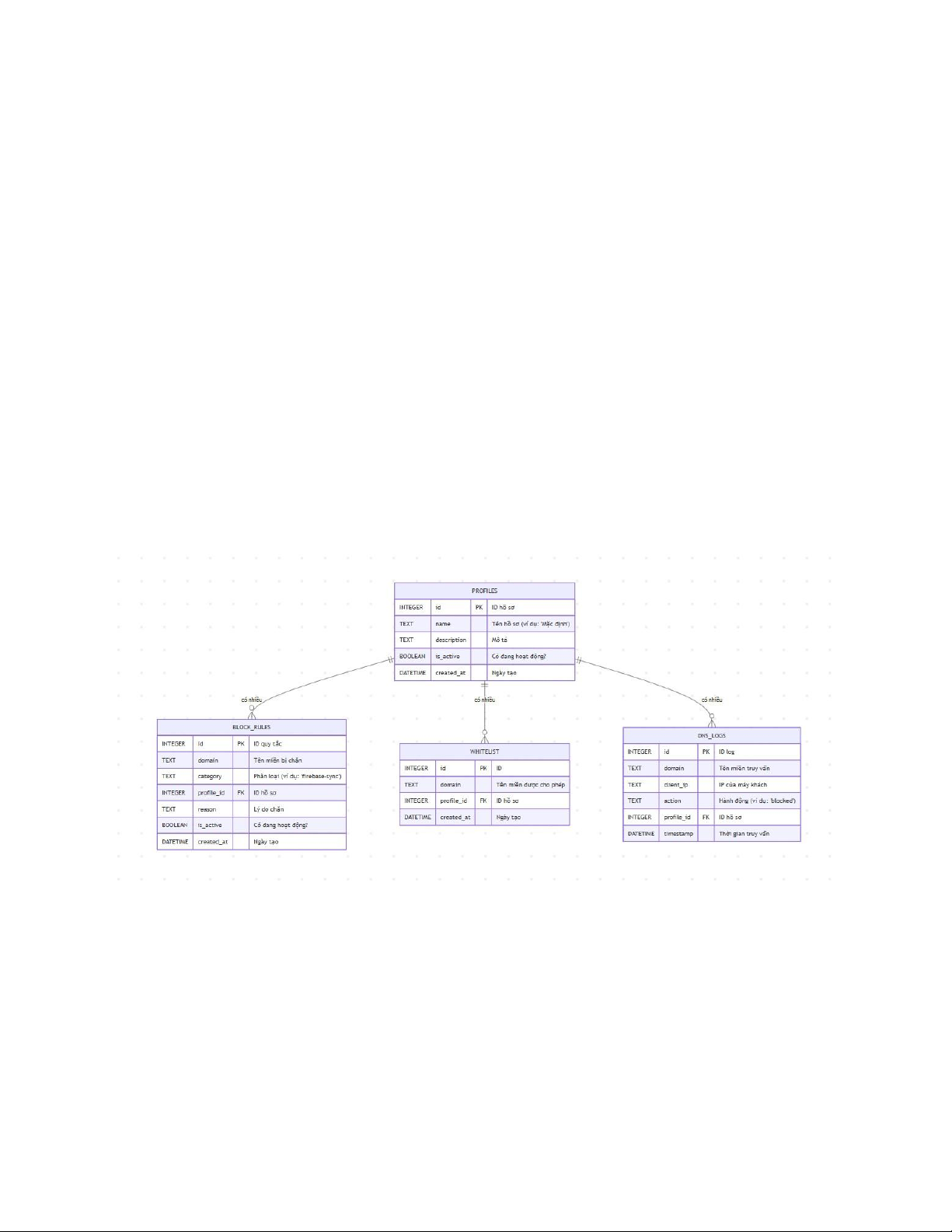 (n) WHITELIST. Mỗi PROFILES cũng có (n) bản ghi DNS_LOGS tương ứng. Đây