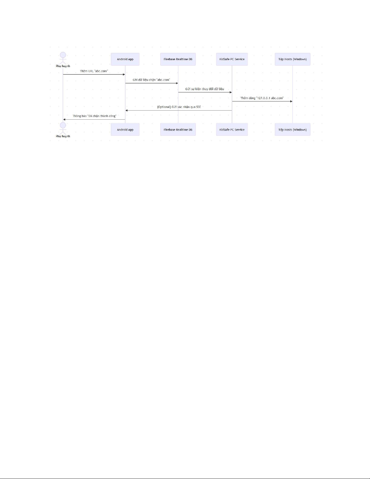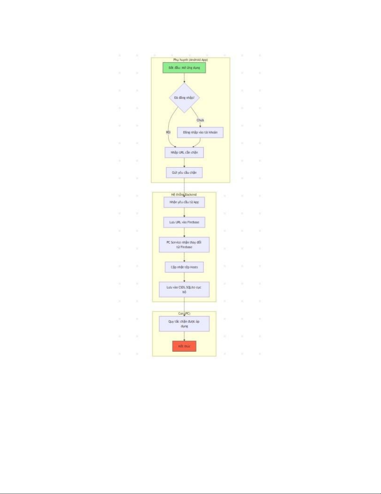 Phụ huynh (Android App): Mở ứng dụng, đăng nhập, nhập URL cần chặn và gửi yêu cầu.