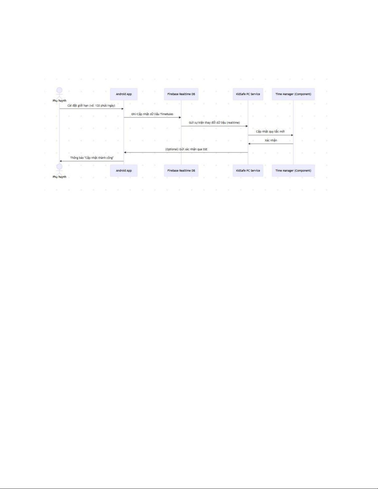 Firebase tự động gửi sự kiện thay đổi dữ liệu (realtime) đến KidSafe PC Service đang lắng nghe.