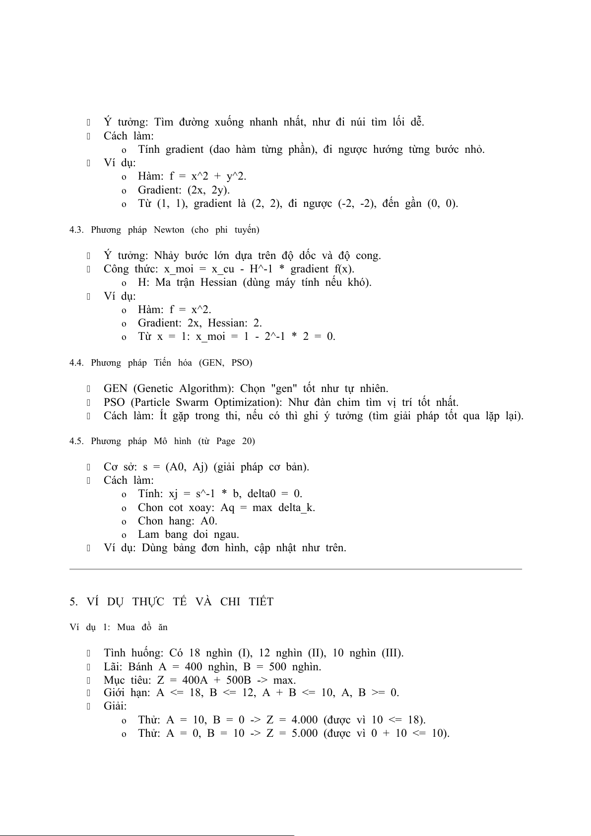 4. Kiểm tra: Đưa nghiệm vào ràng buộc, tính giá trị mục tiêu. Nếu sai, kiểm tra lại.