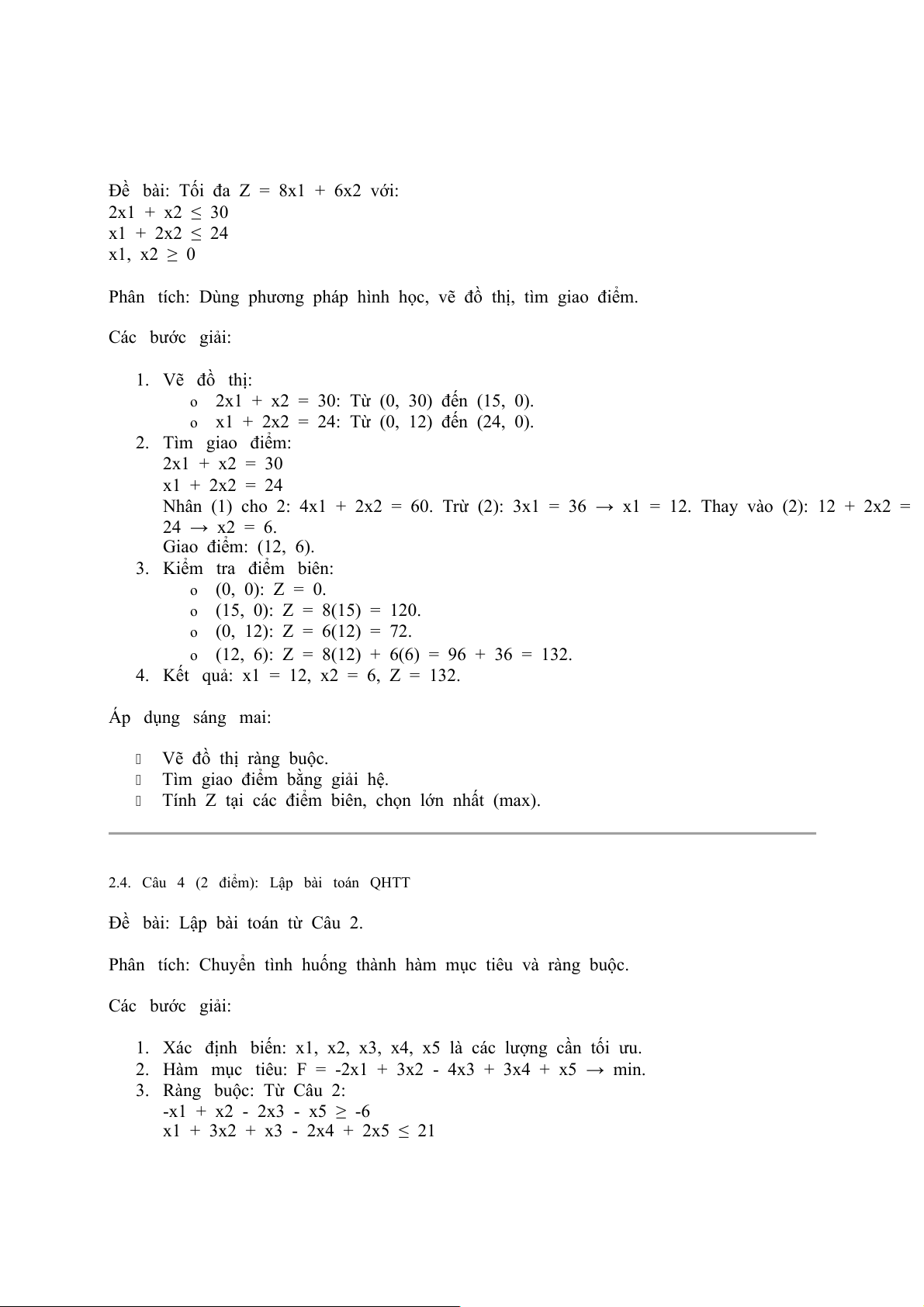 2.2. Câu 2 (4 điểm): Giải bài toán QHTT