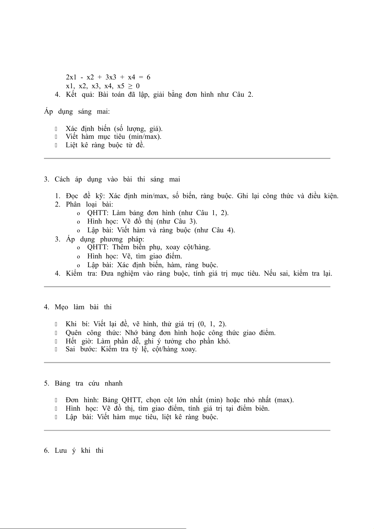 1. Đọc đề kỹ: Xác định min/max, số biến, ràng buộc. Ghi lại công thức và điều kiện.