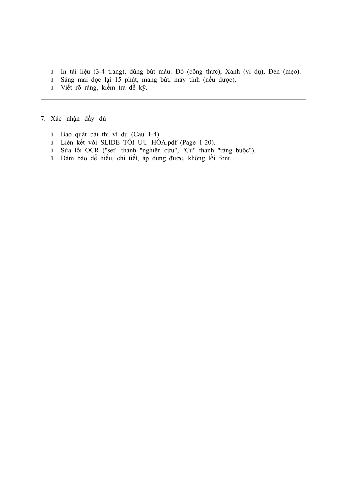 Đảm bảo dễ hiểu, chi tiết, áp dụng được, không lỗi font.