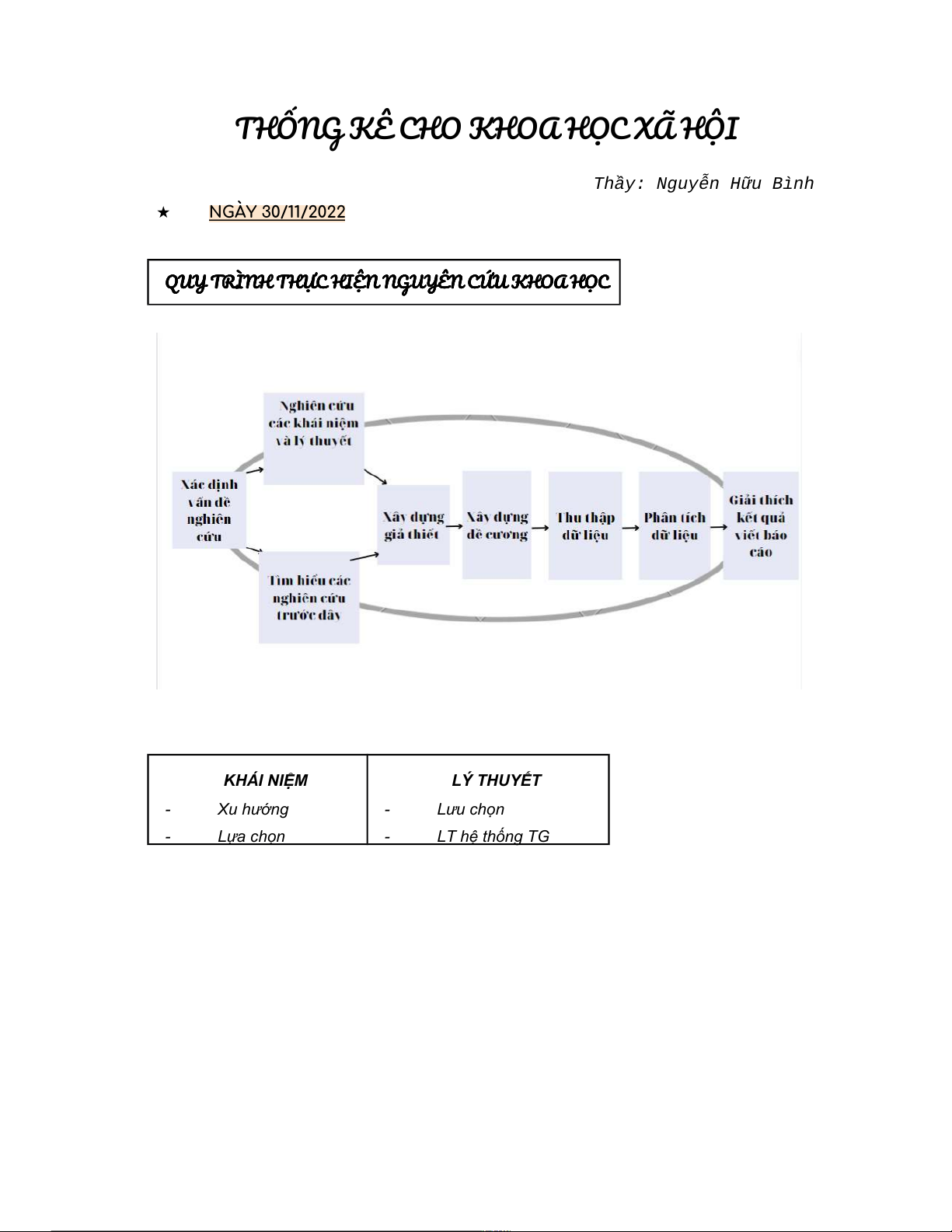Thầy: Nguyễn Hữu Bình ★ N GÀY 30/11/2022 QU Q Y U TRÌNH Y TRÌNH TH T Ự H C Ự C HI H Ệ I N Ệ N NG N U G Y U Ê Y N Ê N CỨ C U Ứ U KH K O H A O A HỌ H C Ọ KHÁI NIỆM LÝ THUYẾT - Xu hướng - Lưu chọn - Lựa chọn - LT hệ thống TG 1. Thu thập dữ liệu: - Xây dựng BH -