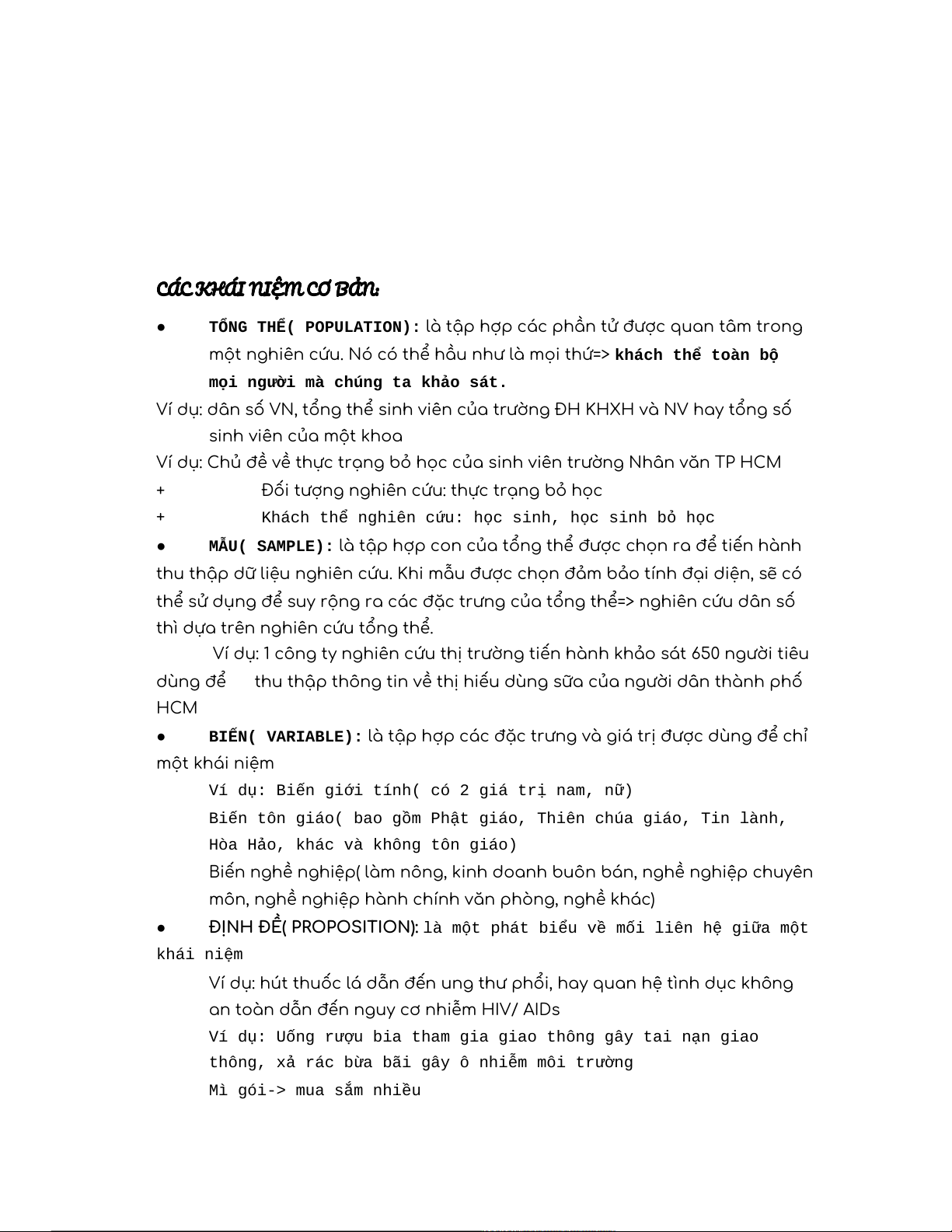 Chọn mẫu/ Tìm quy mô mẫu - Khảo sát 2. Phân tích dữ liệu: - Đọc/ Tổng hợp - Diễn giả - Đánh giá/ nhận định 3. Viết báo cáo CÁC C ÁC KH K ÁI H N ÁI I N Ệ I M Ệ M CƠ C Ơ BẢN BẢ : N ●
