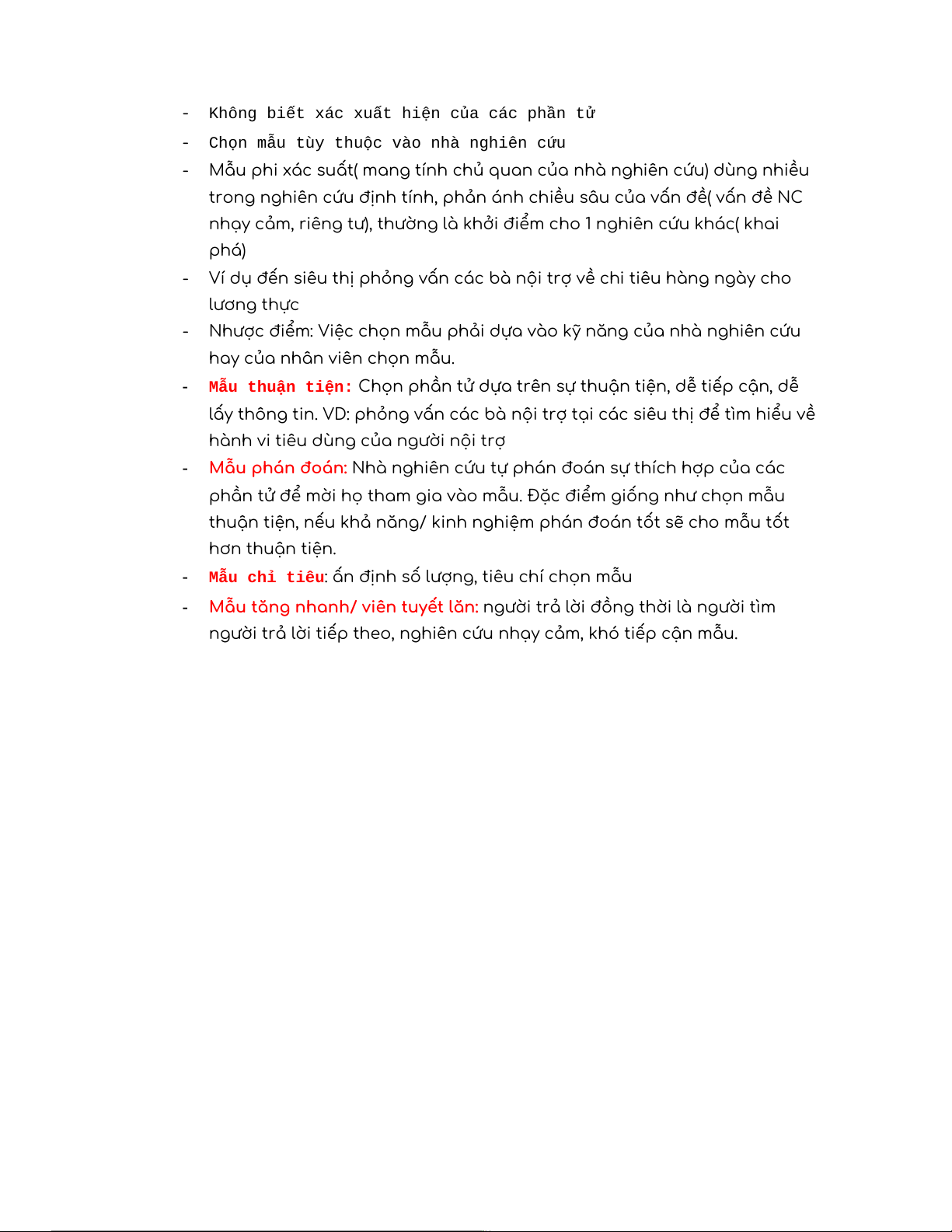 mẫu không mang tính đại diện cho tổng thể( phi xác suất) mà chỉ đúng