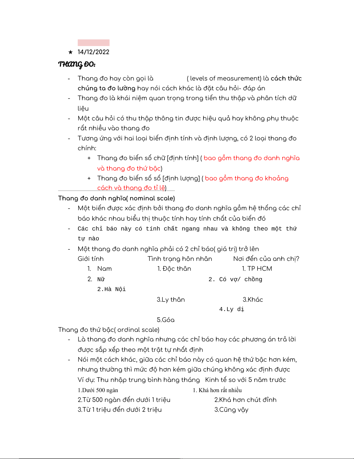 + Thang đo biến số chữ [định tính] ( bao gồm thang đo danh nghĩa và thang đo thứ bậc)