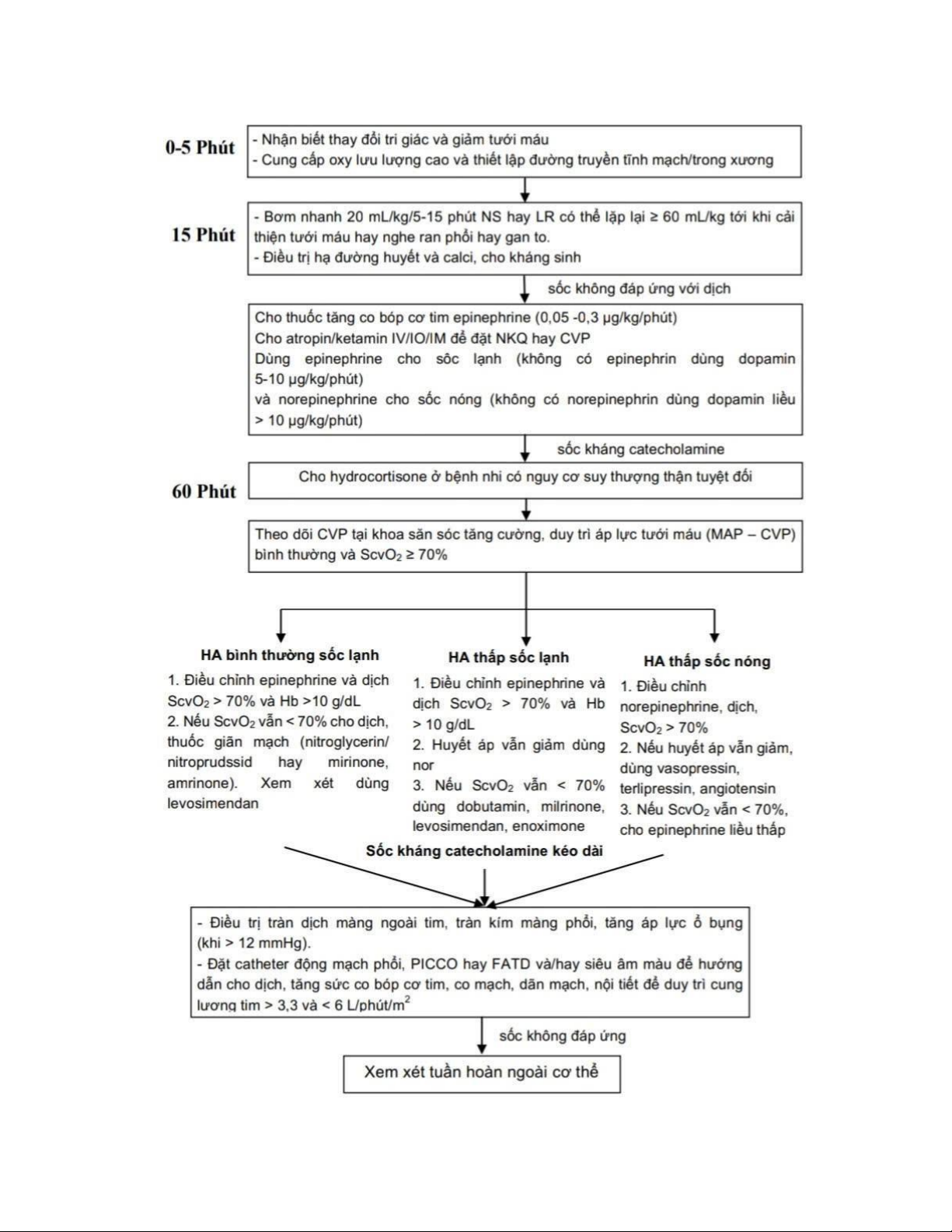 cần duy trì huyết áp động mạch trung bình ≥ 60 mmHg. - ScvO2 ≥ 70%