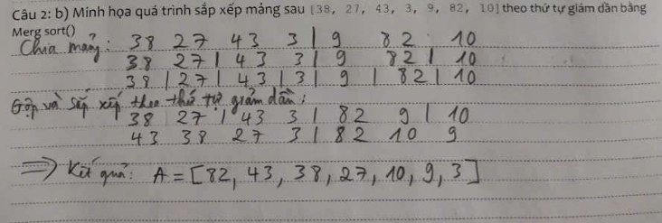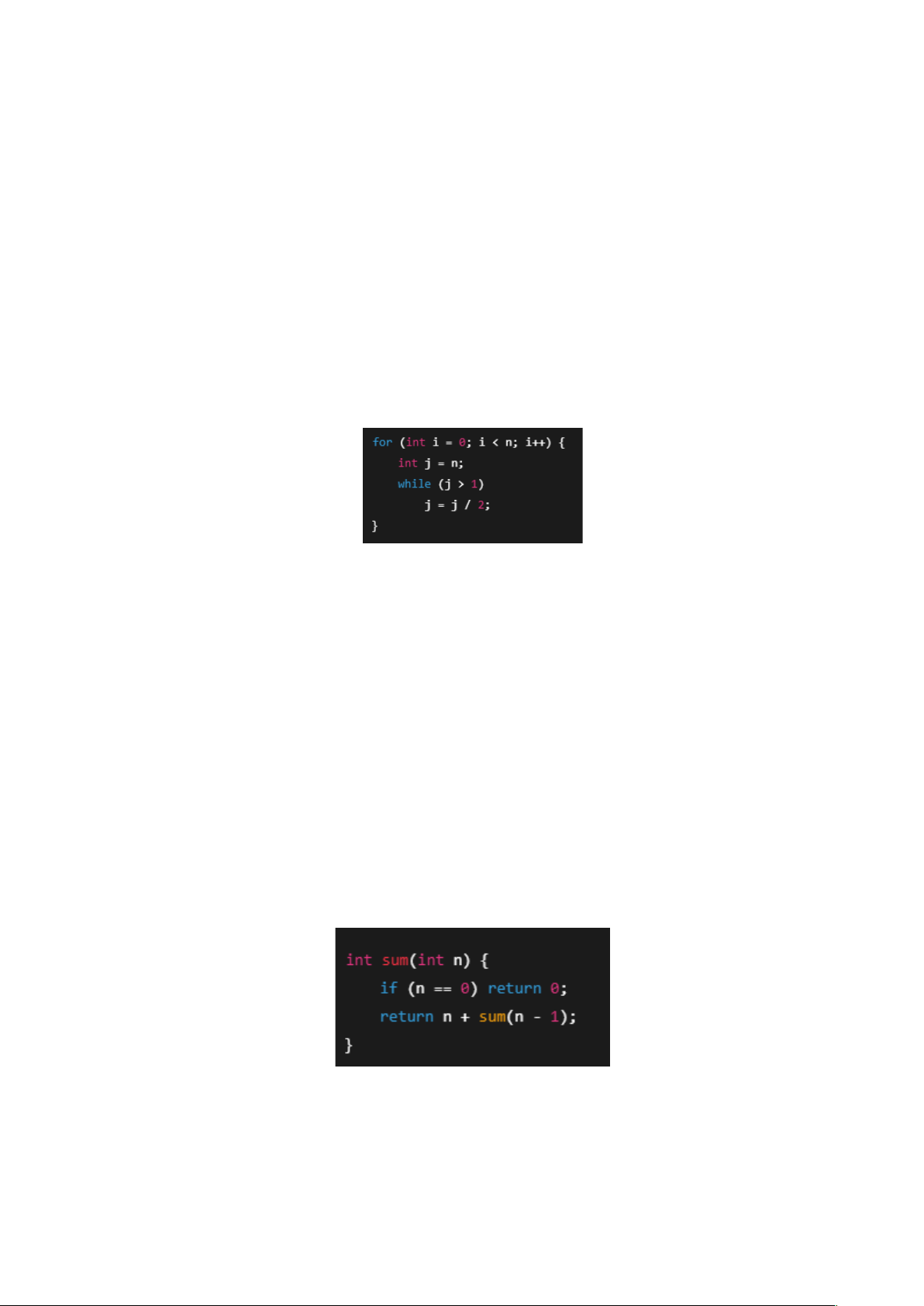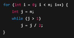- O(n log n): vòng lặp trong là (log n), vì chia đôi. Vòng lặp ngoài là n.