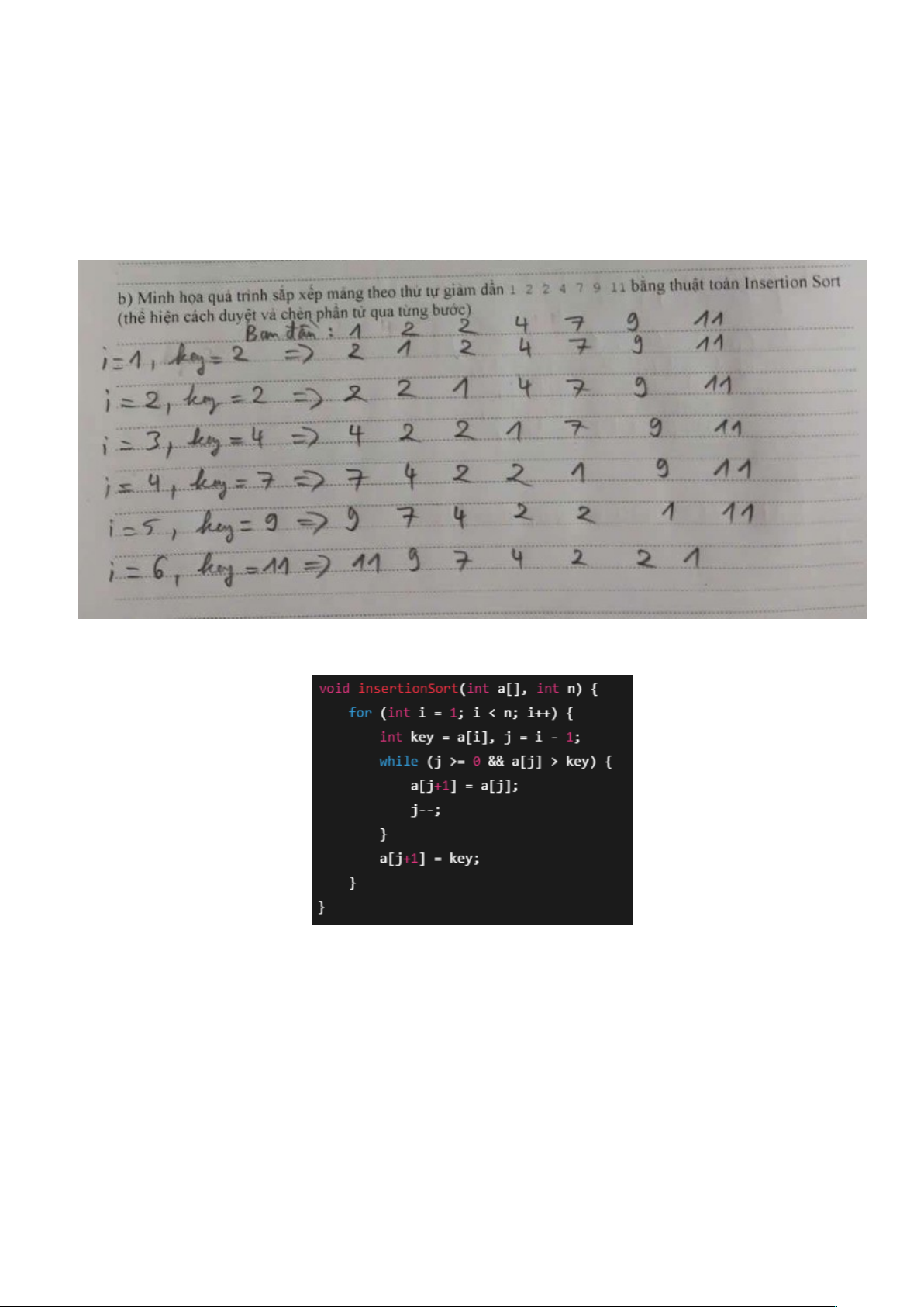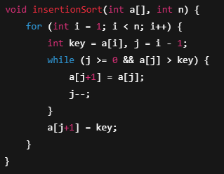 void insertionSort(int a[], int n) {