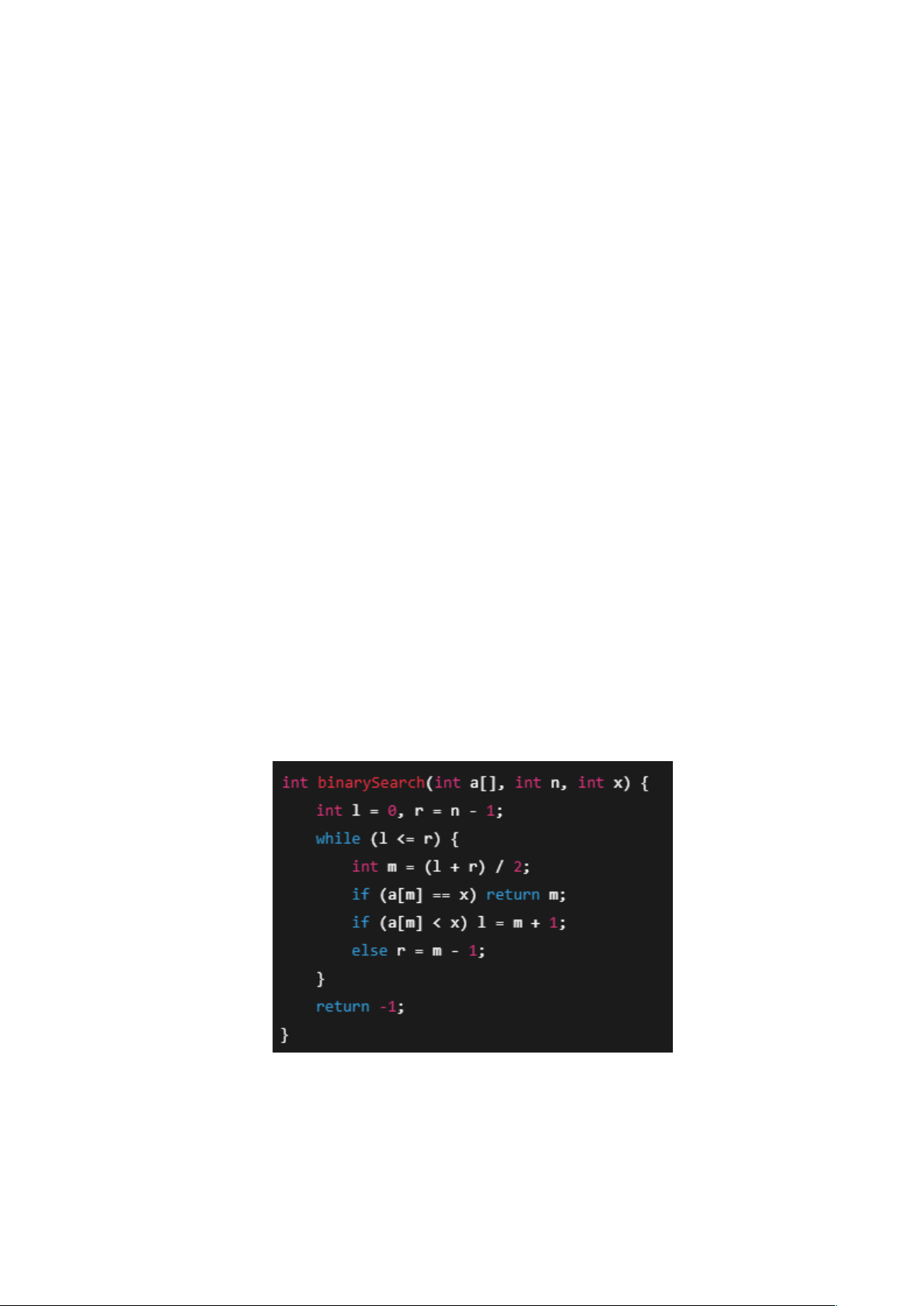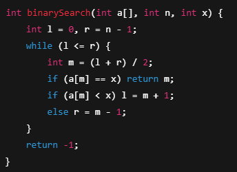 int binarySearch(int a[], int n, int x) {