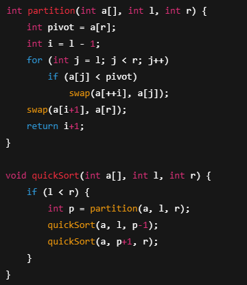 void quickSort(int a[], int low, int high) {