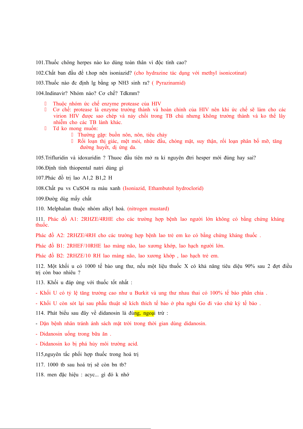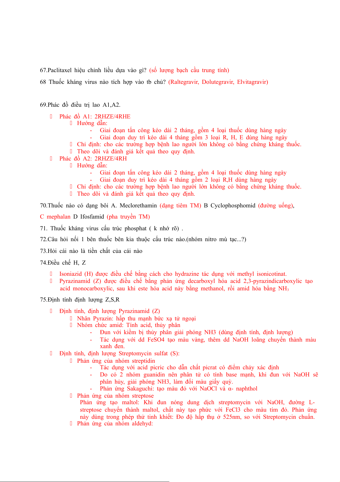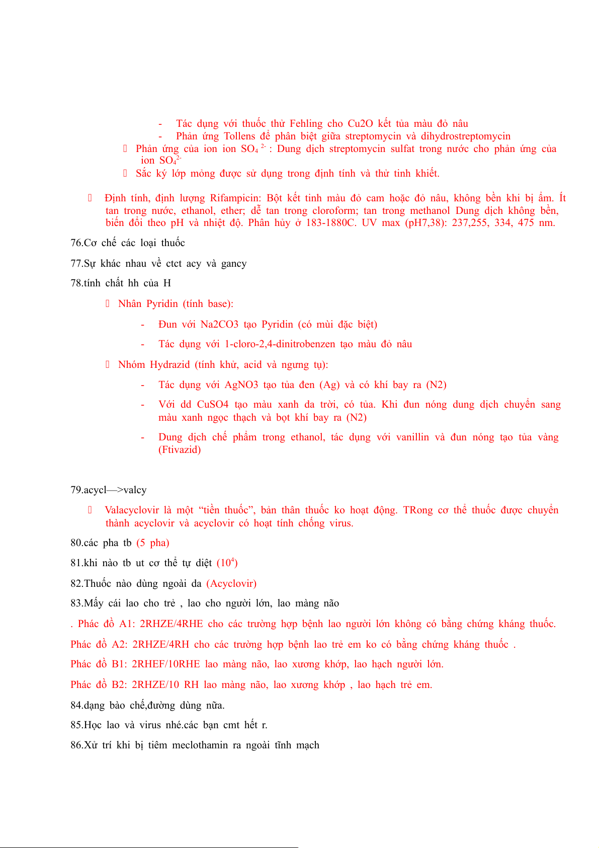 108.Chất pu vs CuSO4 ra màu xanh (Isoniazid, Ethambutol hydroclorid) 109.Đườg dùg mấy chất
