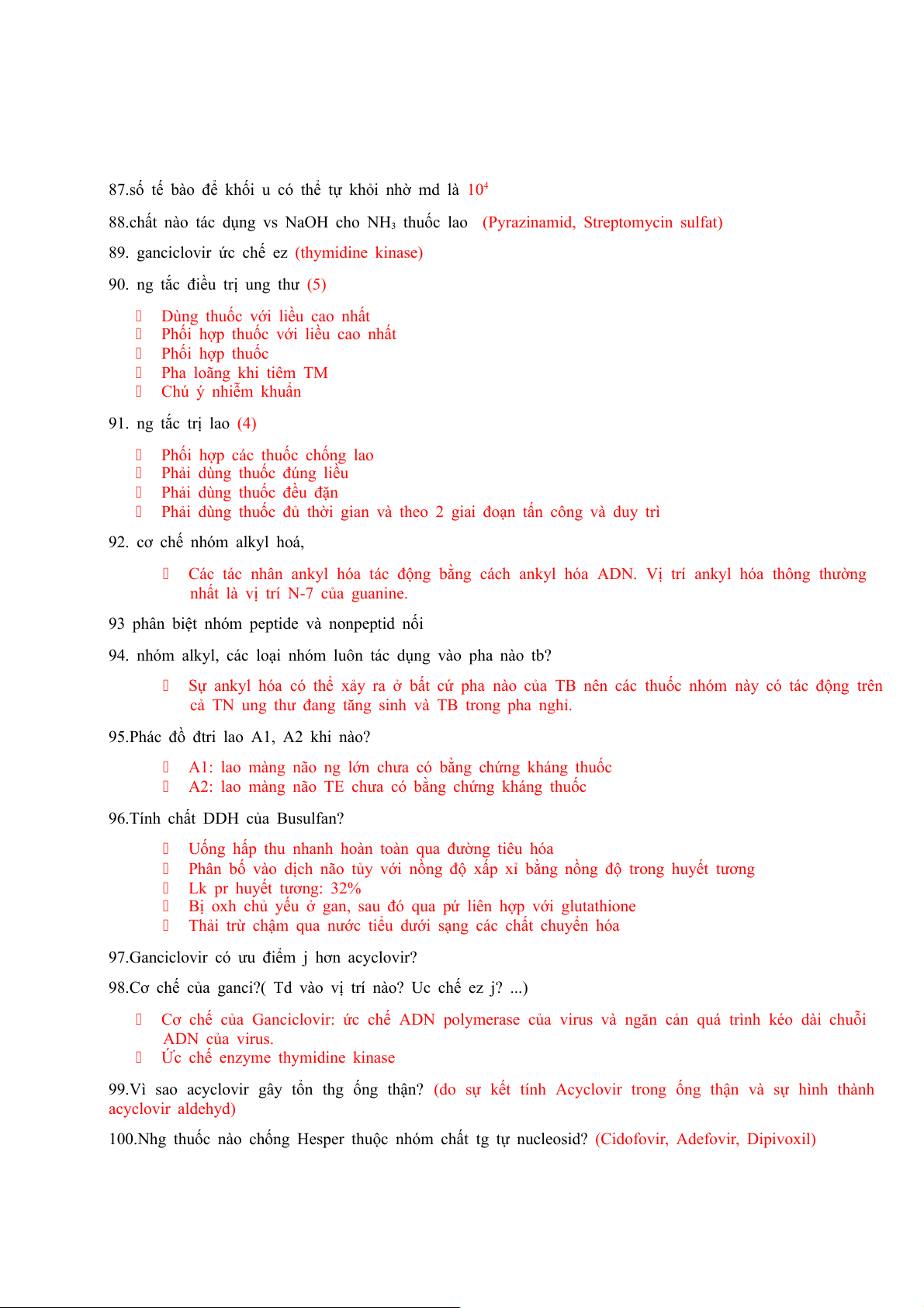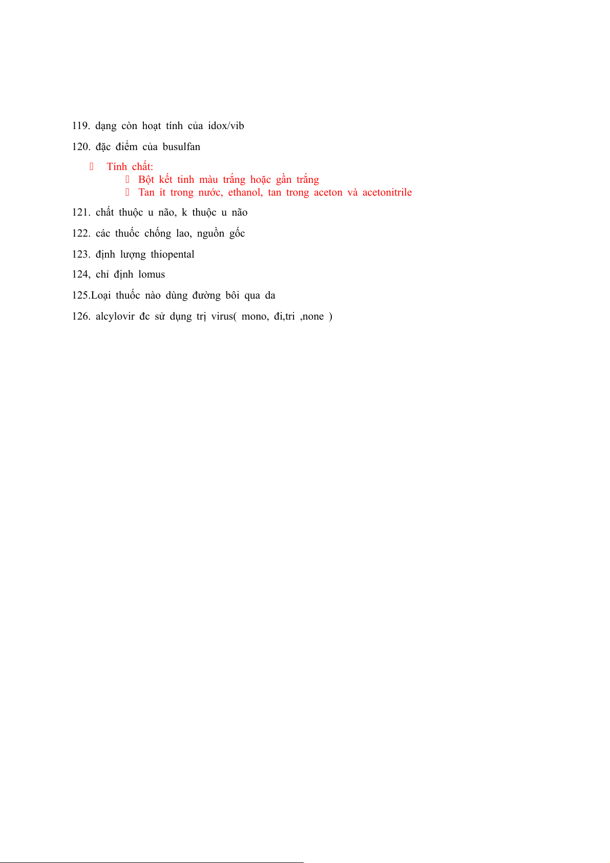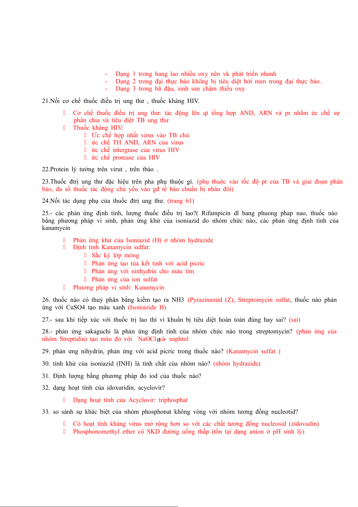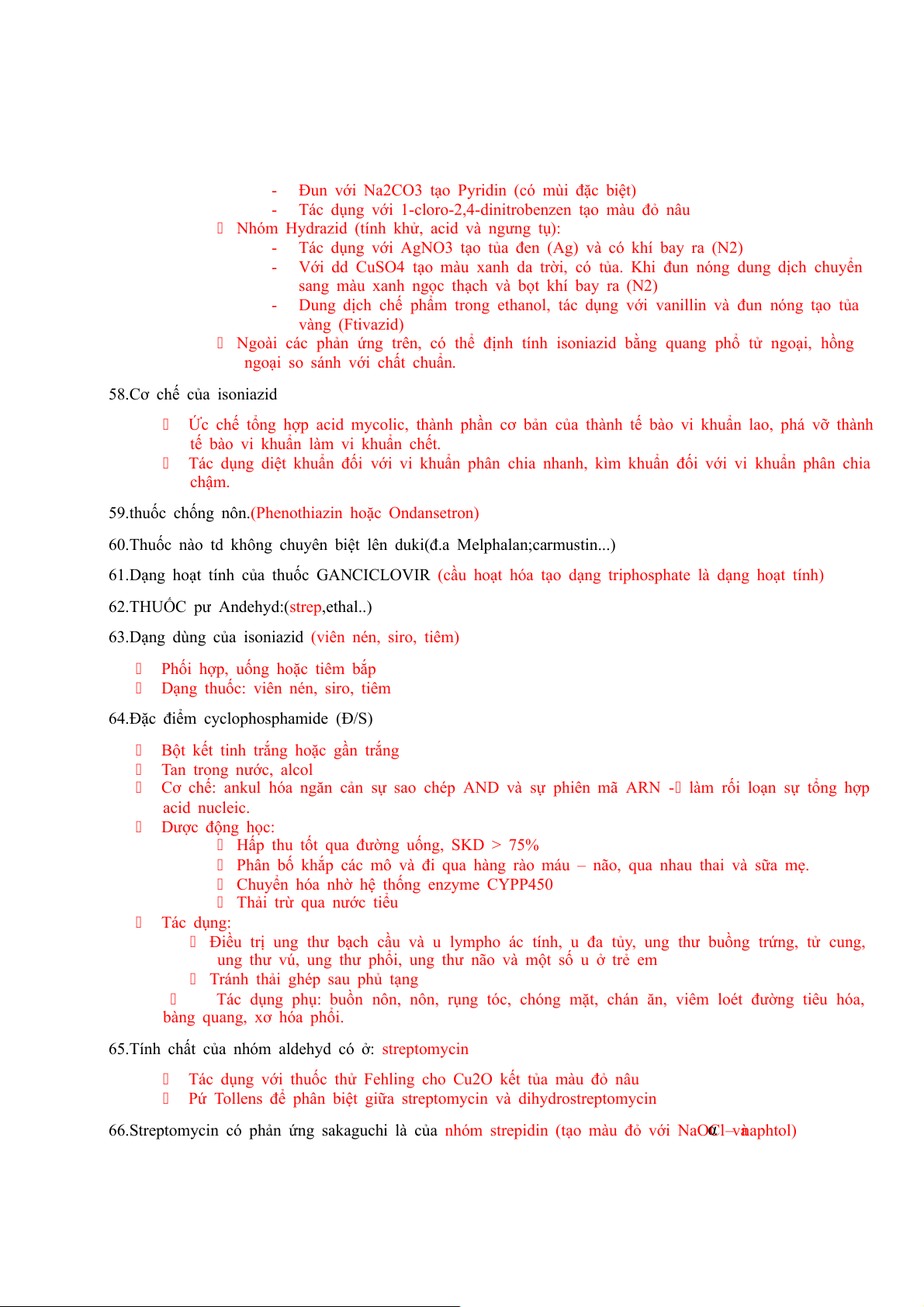 108.Chất pu vs CuSO4 ra màu xanh (Isoniazid, Ethambutol hydroclorid) 109.Đườg dùg mấy chất