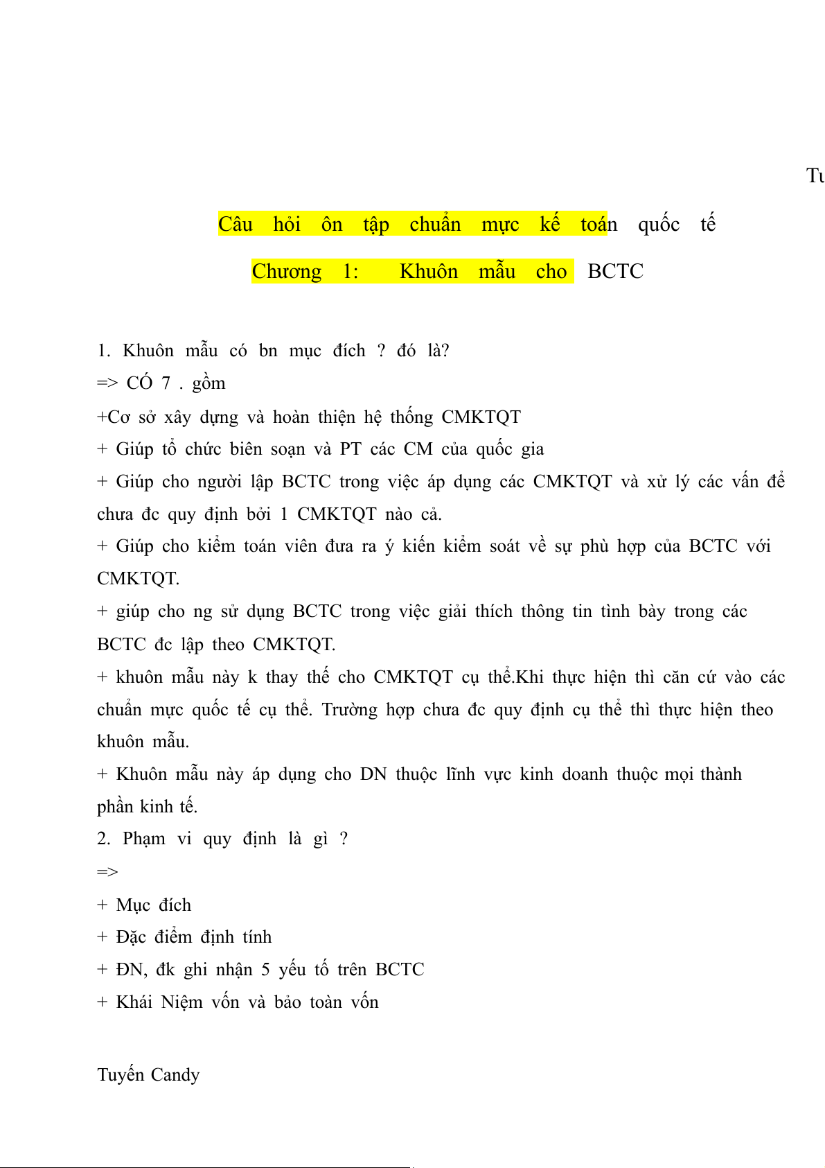 Câu hỏi ôn tập chuẩn mực kế toán quốc tế