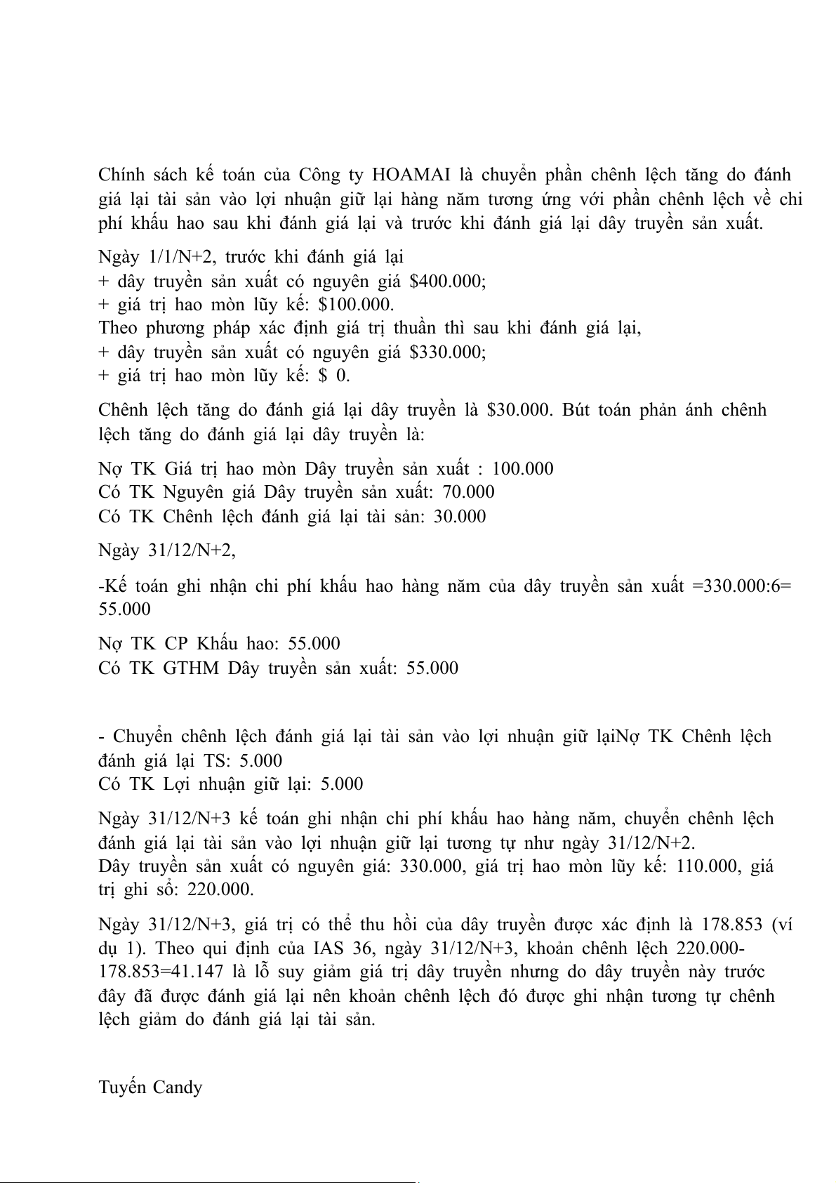 lệch giảm do đánh giá lại tài sản. Tuyến Candy
