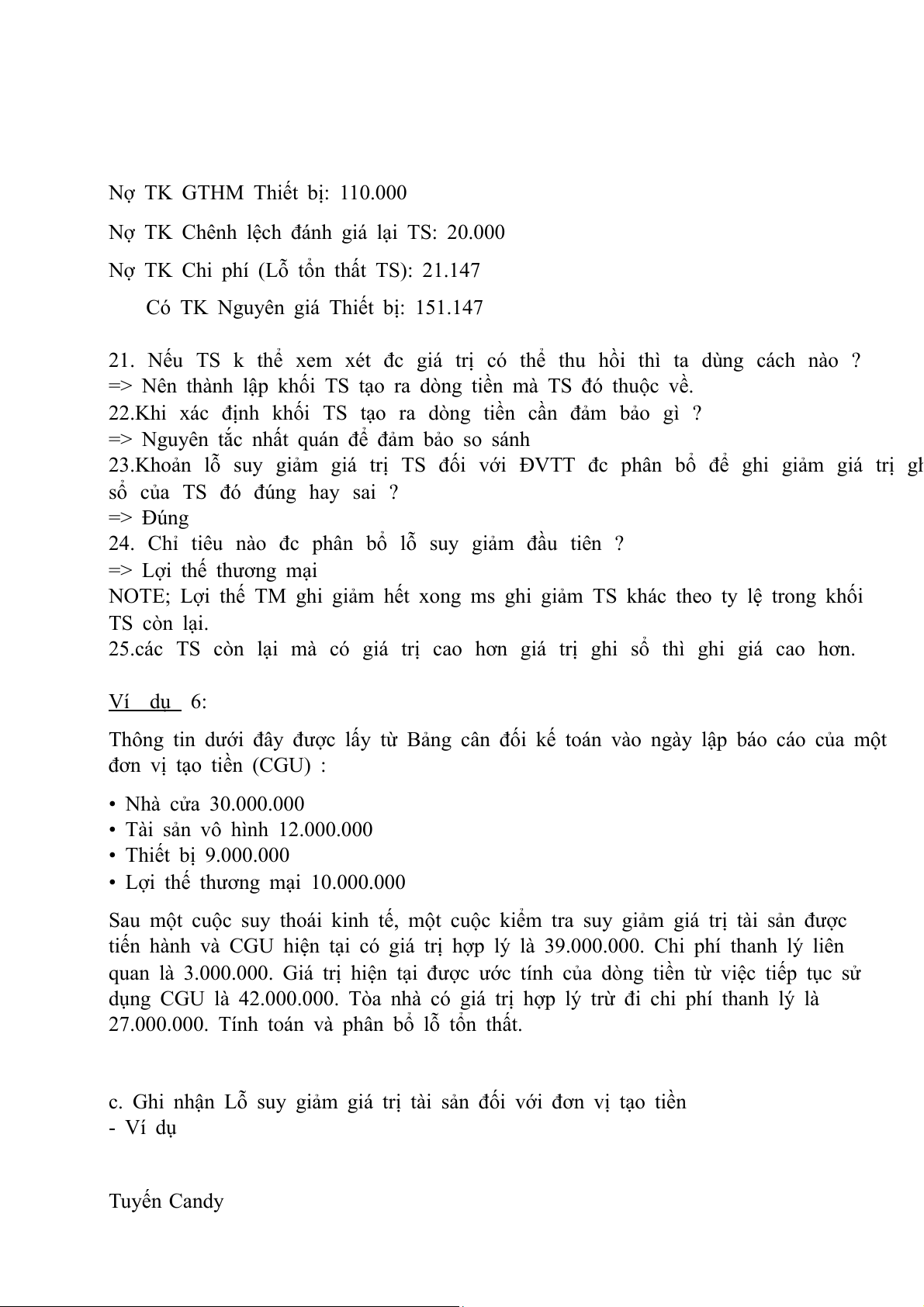 c. Ghi nhận Lỗ suy giảm giá trị tài sản đối với đơn vị tạo tiền - Ví dụ Tuyến Candy