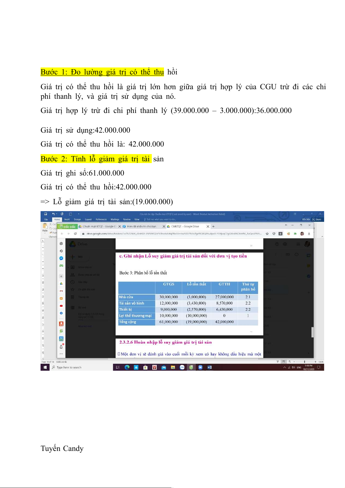 Bước 2: Tính lỗ giảm giá trị tài sản Giá trị ghi sổ:61.000.000