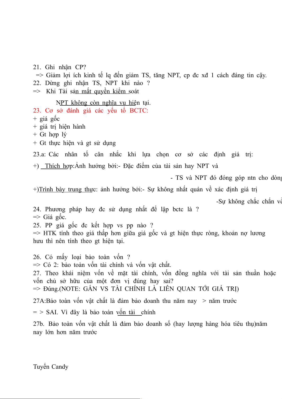 23. Cơ sở đánh giá các yếu tố BCTC: + giá gốc + giá trị hiện hành + Gt hợp lý