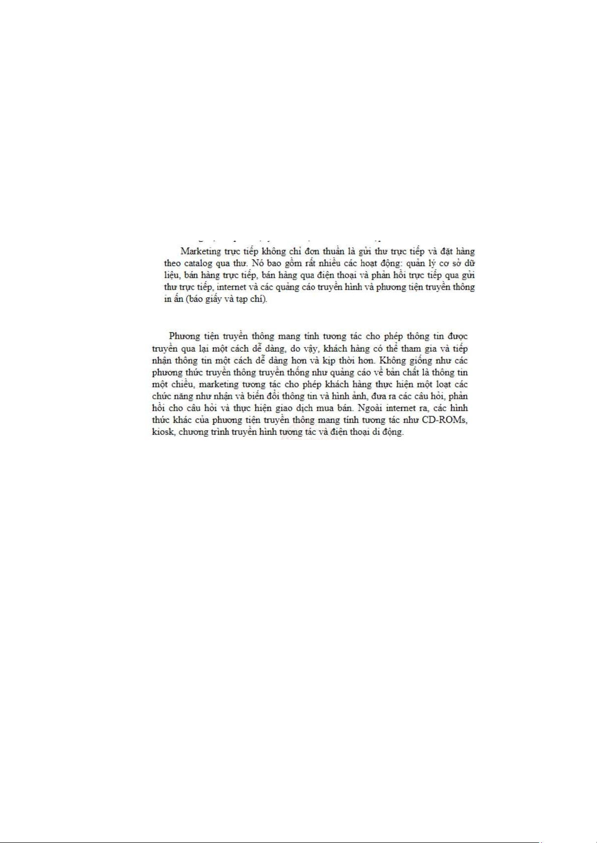 (1) Marketing trực tiếp là truyền thông hướng tới khách hàng nhằm tạo ra