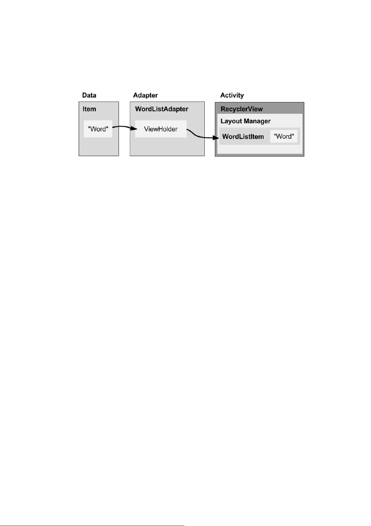 ● Adapter connects data to the RecyclerView - RecyclerView.Adapter