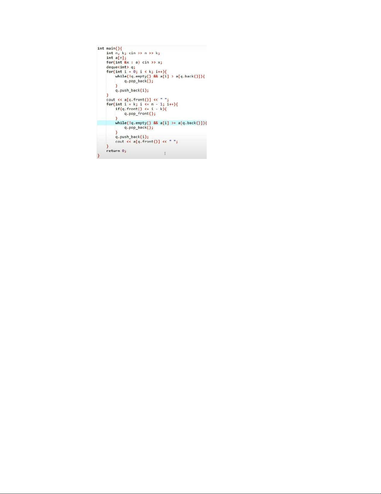 for(int i = 1; i < n; i++){ int x = a[i]; int pos = i - 1;