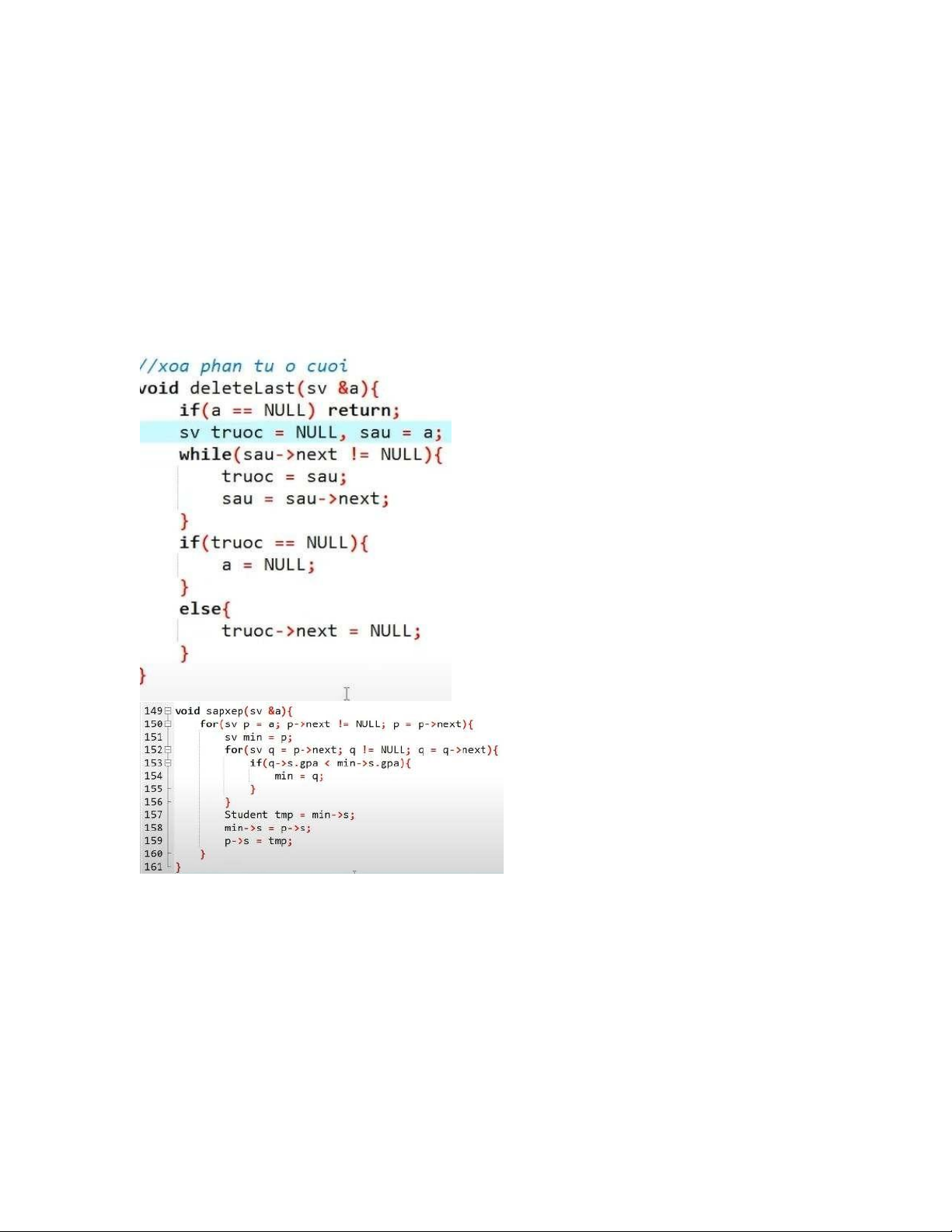 int tmp = min->a.soTin; min->a = p->a; p->a.soTin = tmp; } } // dem so phan tu int Sizesv(sv a){ int dem = 0; while(a != NULL){ lOMoAR cPSD| 58702377 ++dem; a = a->next; } return dem; }