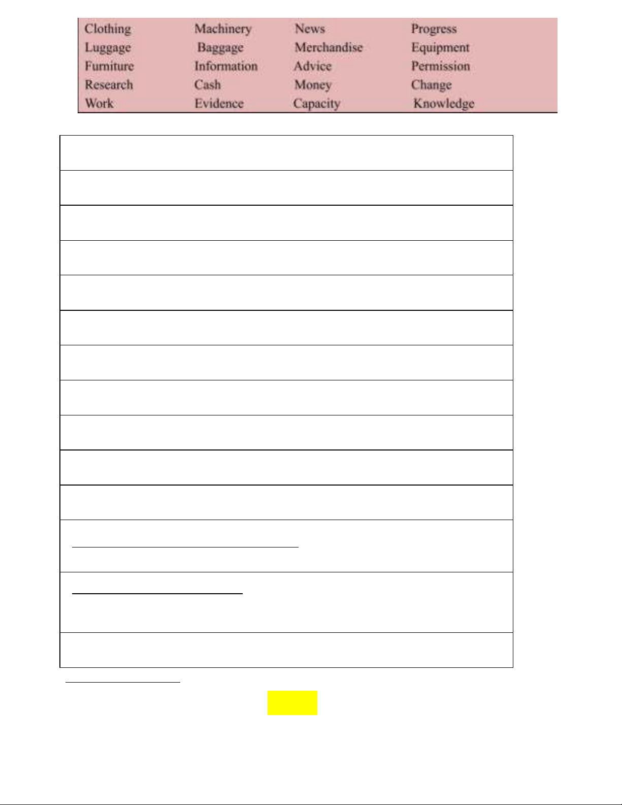 NOTE: Những danh từ không ếm ược thường ra trong TOEIC Uncountable nouns commonly used in TOEIC