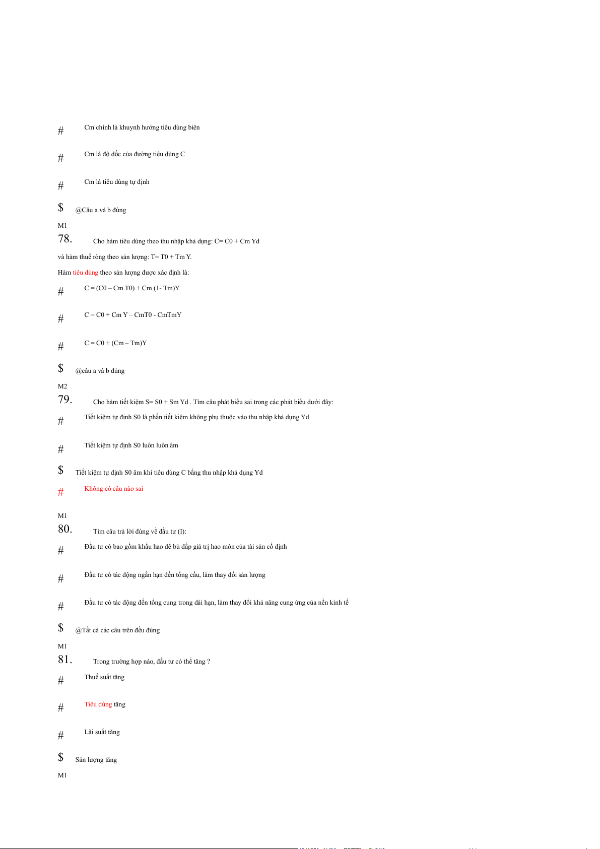 C = (C0 – Cm T0) + Cm (1- Tm)Y # C = C0 + Cm Y – CmT0 - CmTmY # C = C0 + (Cm – Tm)Y $ @câu a và b đúng M2 79.
