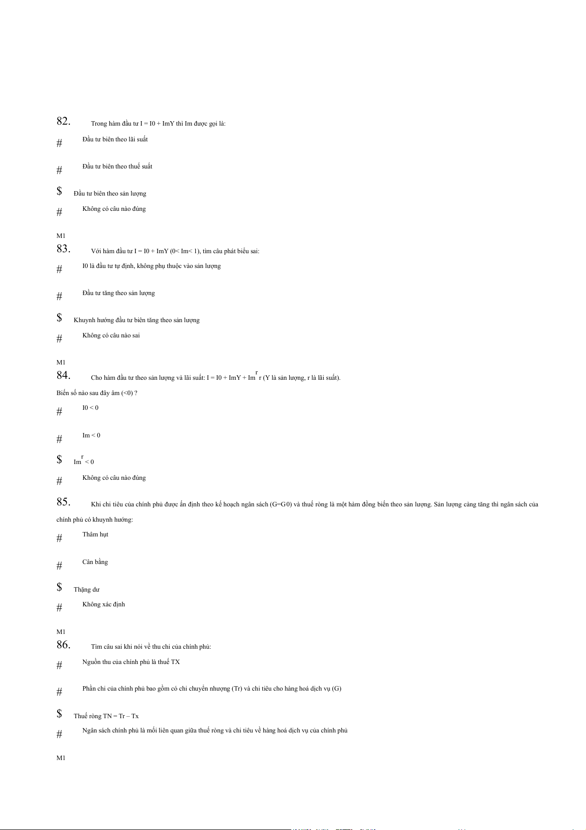 $ Khuynh hướng đầu tư biên tăng theo sản lượng # Không có câu nào sai M1 84. r