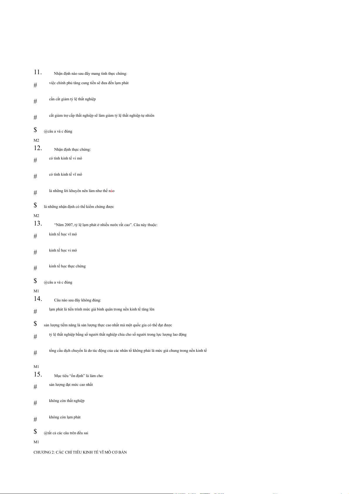 cắt giảm trợ cấp thất nghiệp sẽ làm giảm tỷ lệ thất nghiệp tự nhiên $ @câu a và c đúng M2 12. Nhận định thực chứng: # có tính kinh tế vi mô # có tính kinh tế vĩ mô #