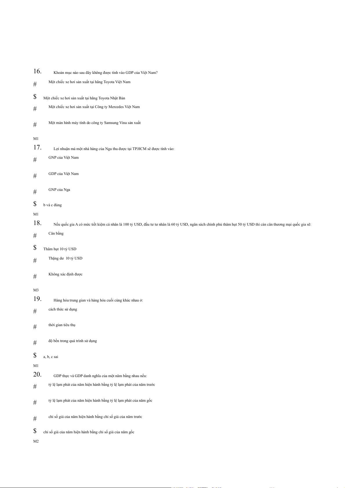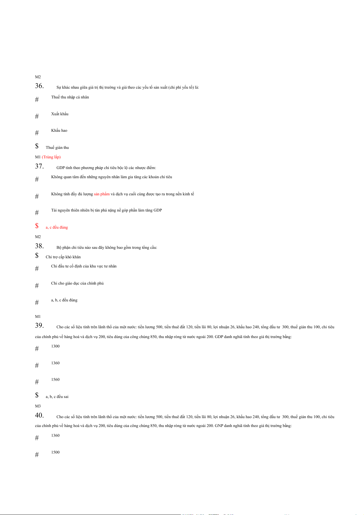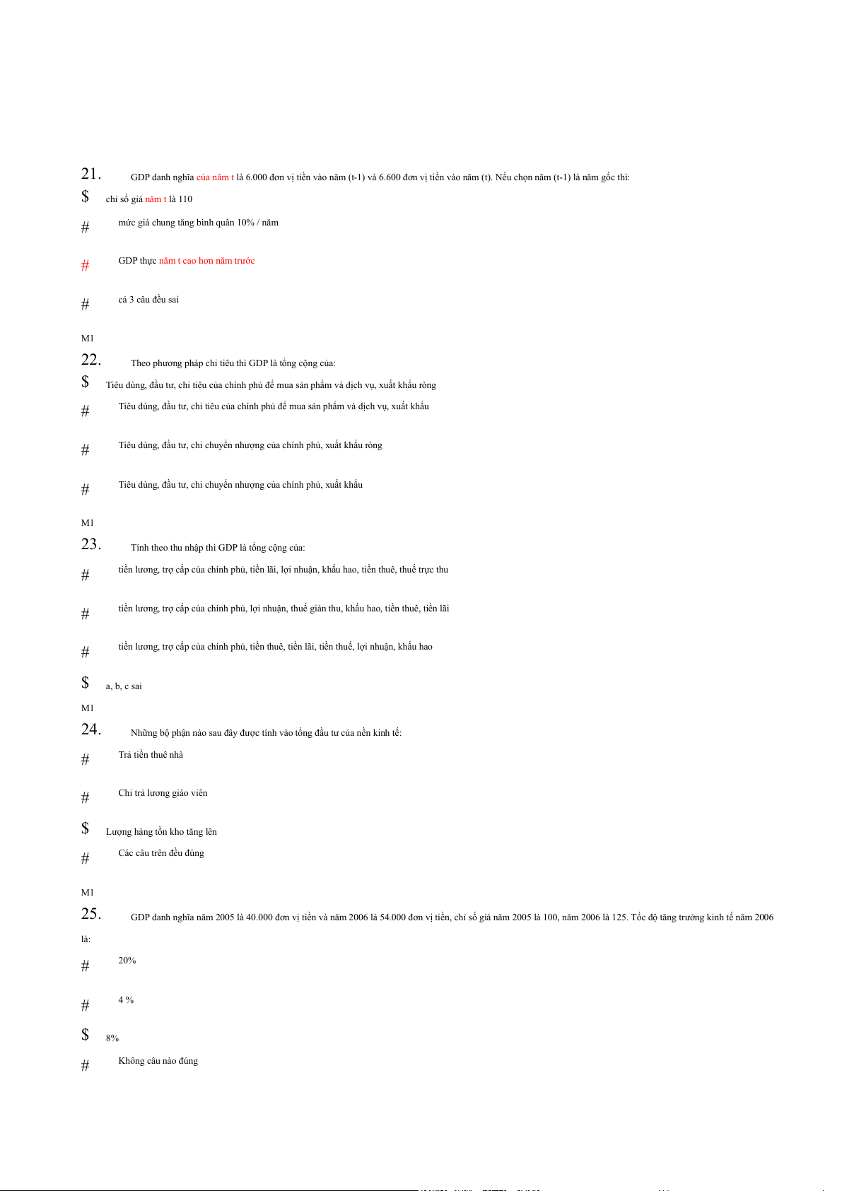 GDP thực năm t cao hơn năm trước # cả 3 câu đều sai M1 22.