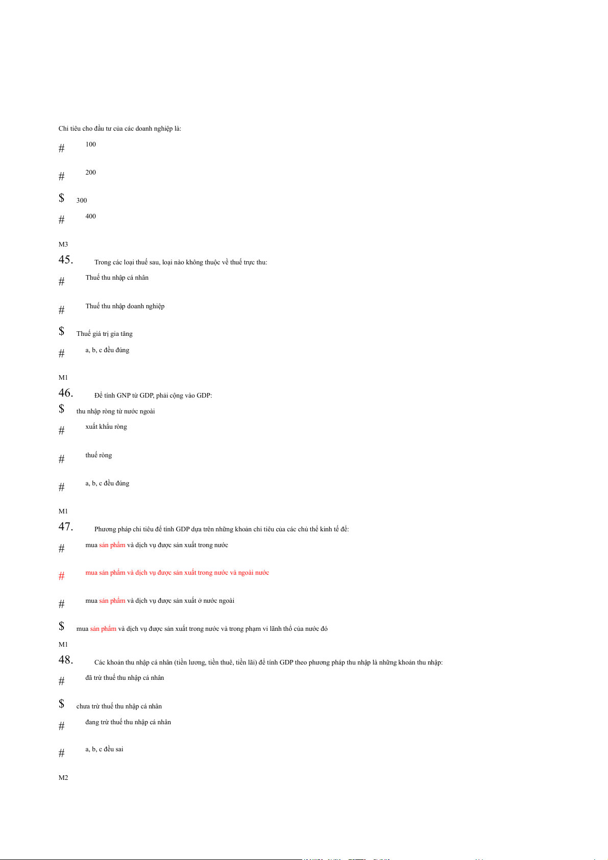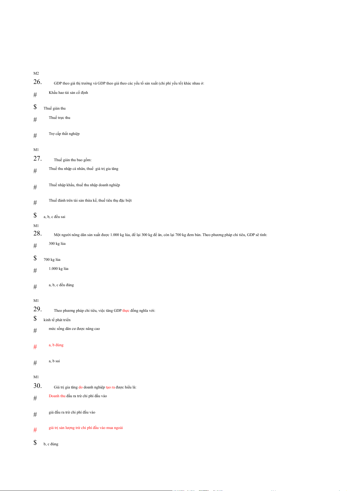 Khấu hao tài sản cố định $ Thuế gián thu # Thuế trực thu # Trợ cấp thất nghiệp M1 27. Thuế gián thu bao gồm: #