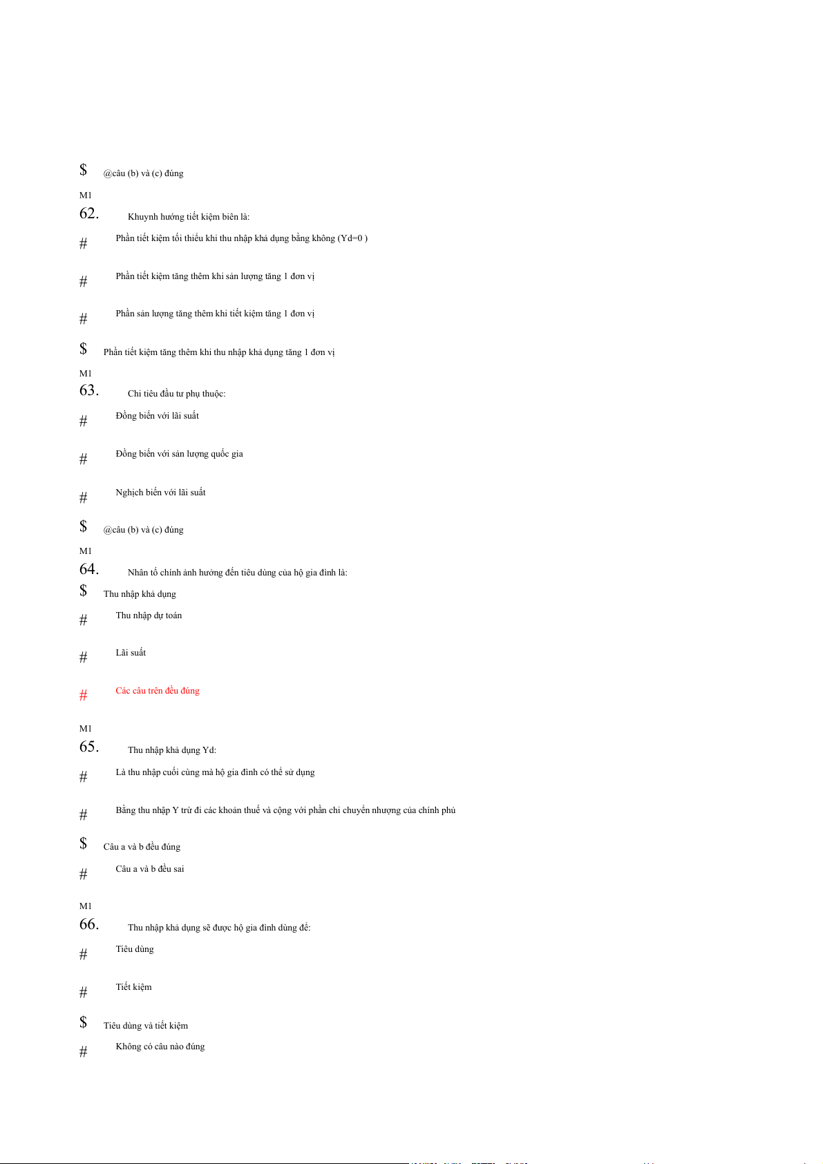 $ Tiêu dùng và tiết kiệm # Không có câu nào đúng M1 67.