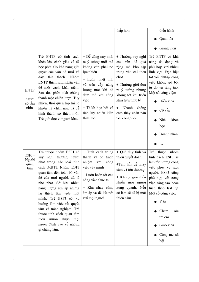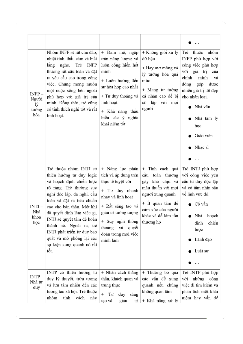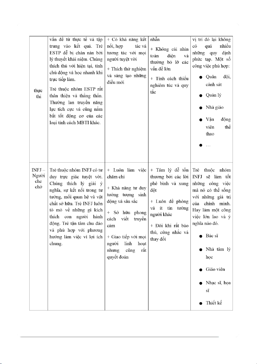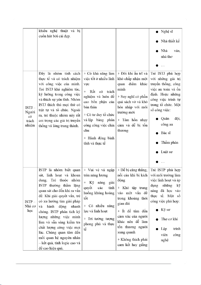 người khác. Đồng thời, thức khoa học và nhiều nghệ sinh nổi nhóm ISFP rất có năng nghiên cứu tiếng nhất. Trẻ ISFP lOMoAR cPSD| 61229936 lOMoAR cPSD| 61229936 buộc với điều gì Thợ mộc …
