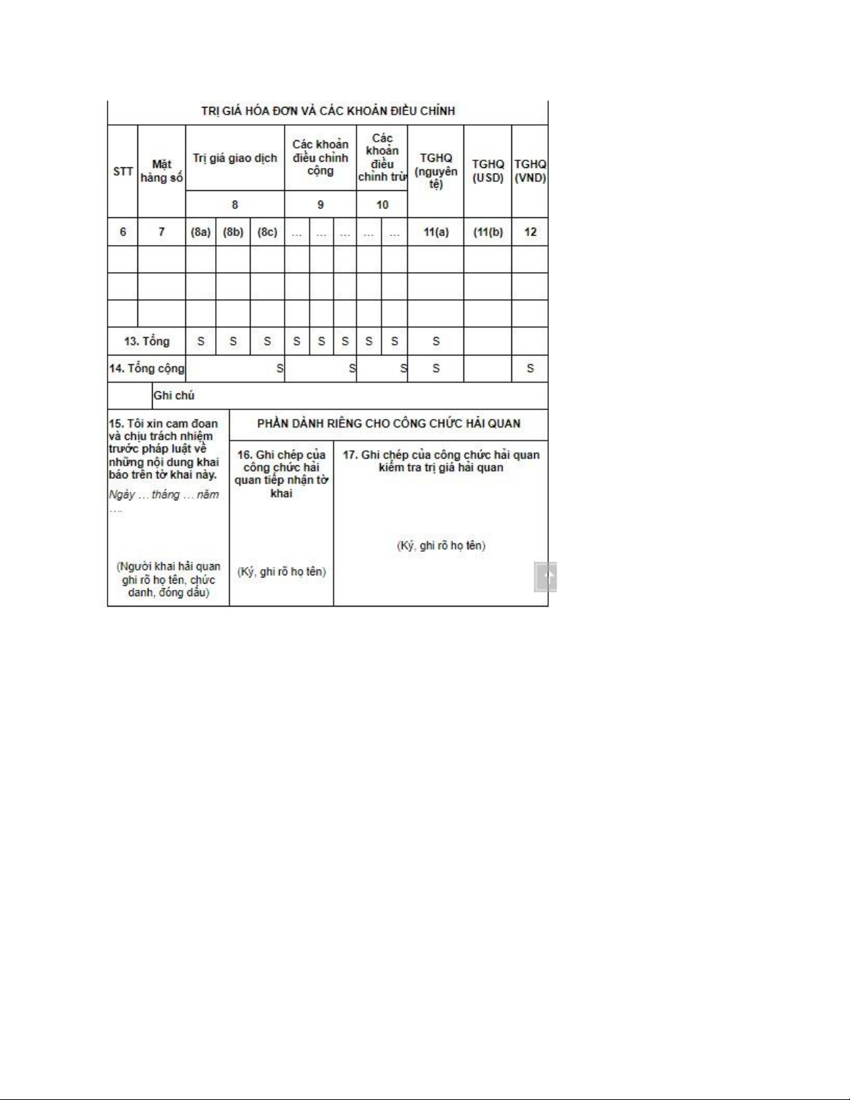 + “Trang số ...”: là của tờ khai trị giá hải quan
