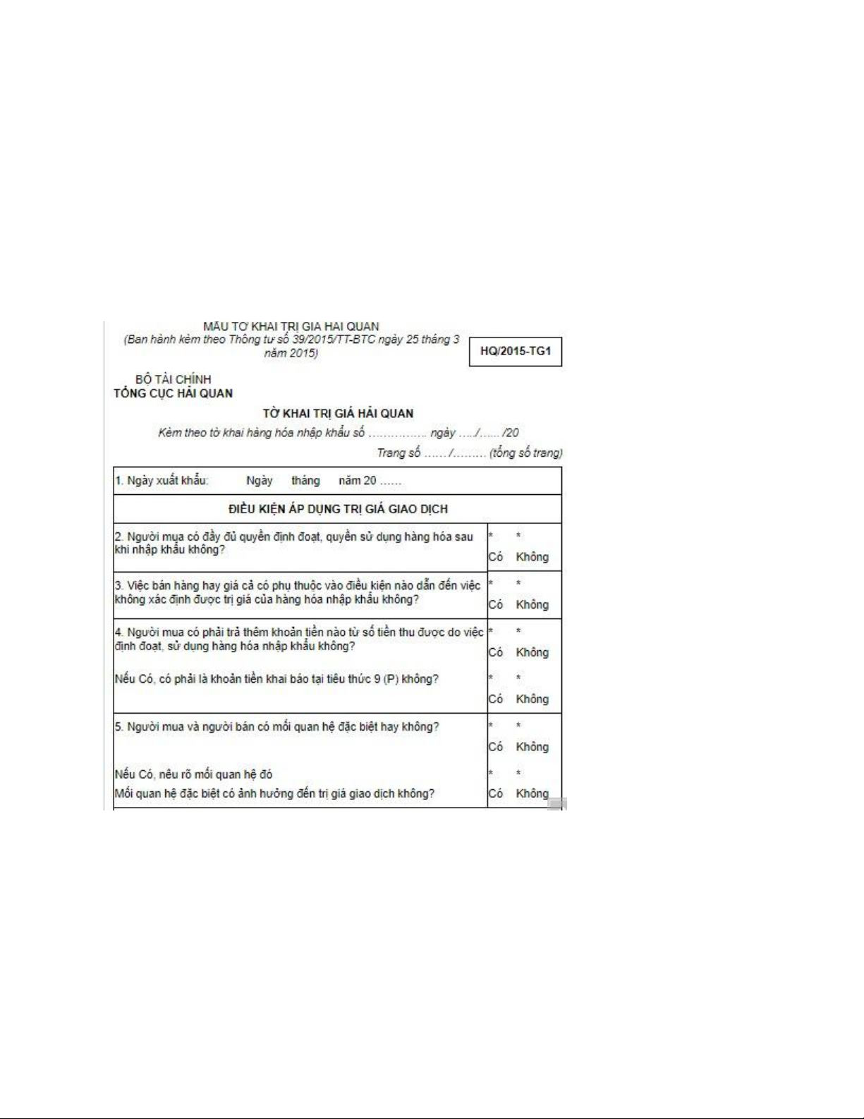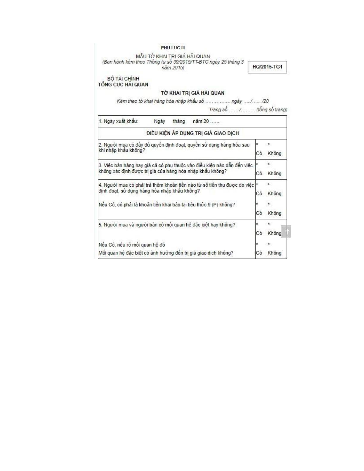 + Tham khảo trong phụ lục III Thông tư 39/2015/TT- BTC trị giá hải quan: lOMoAR cPSD| 59691467 lOMoAR cPSD| 59691467