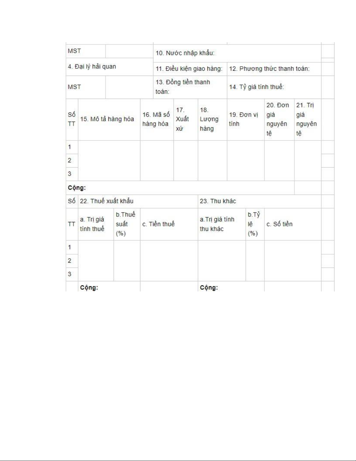 - Thông tư .../2015, phụ lục số 4: Tờ khai XNK (tờ khai này sẽ đính kèm với tờ khai trị giá ở trên) lOMoAR cPSD| 59691467 lOMoAR cPSD| 59691467 lOMoAR cPSD| 59691467