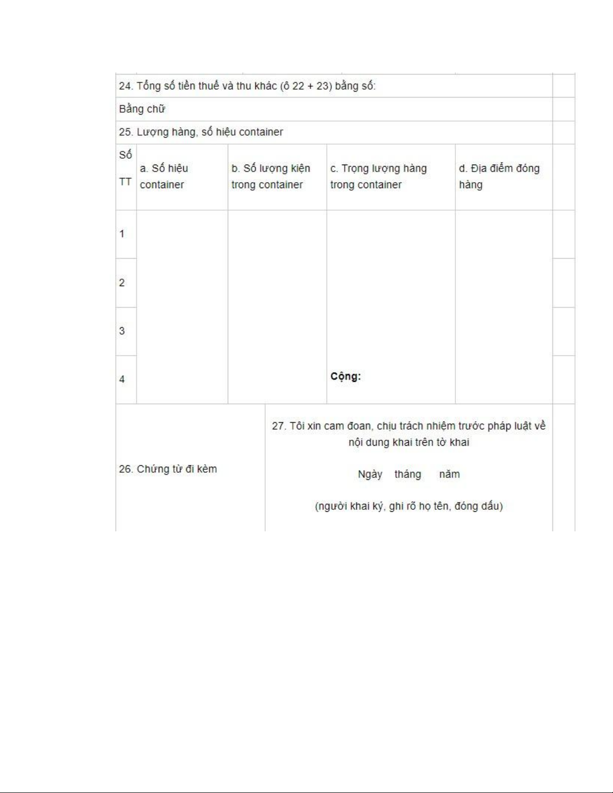- Số lượng hàng hóa căn cứ vào chứng từ B/L