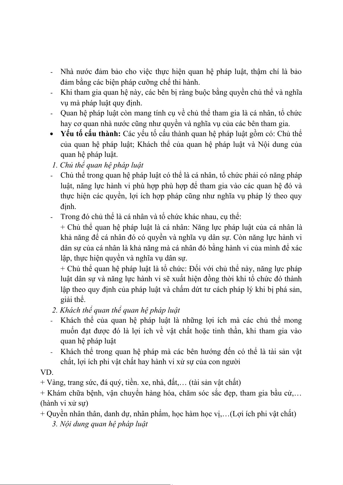 của quan hệ pháp luật; Khách thể của quan hệ pháp luật và Nội dung của quan hệ pháp luật.