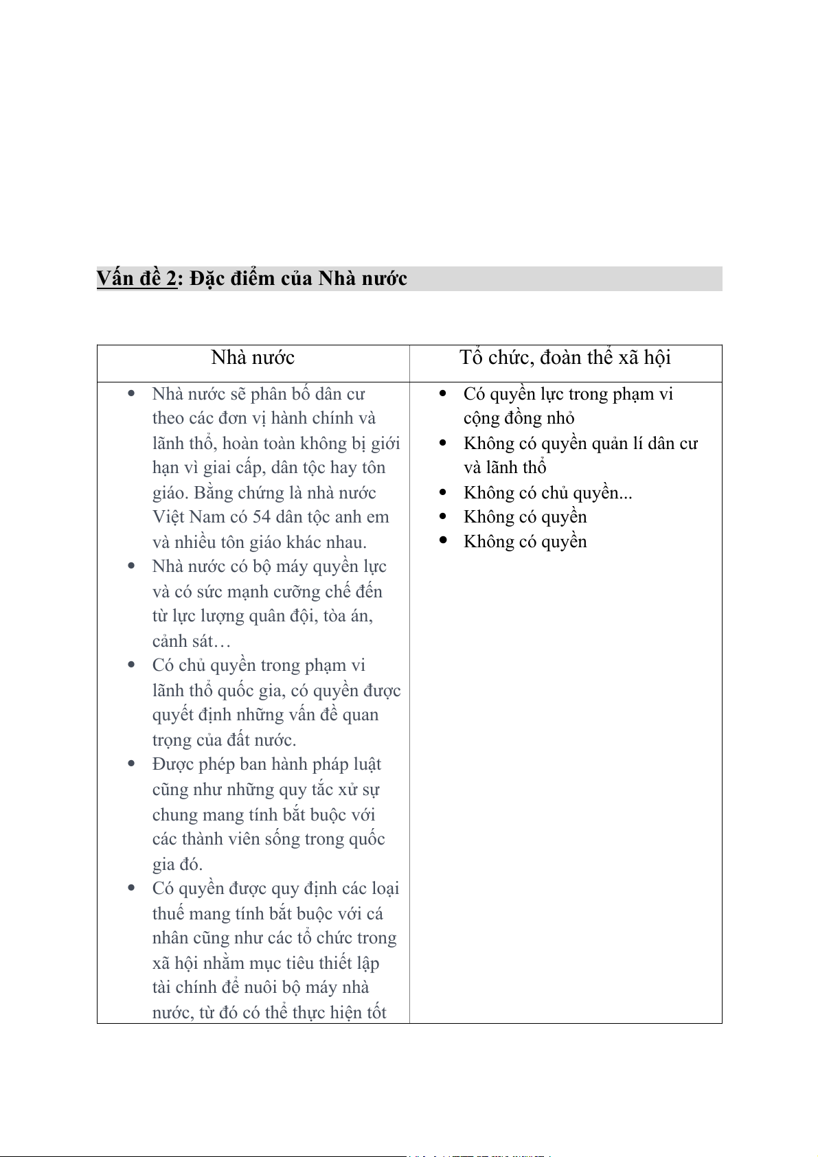 Vấn đề 2: Đặc điểm của Nhà nước Nhà nước