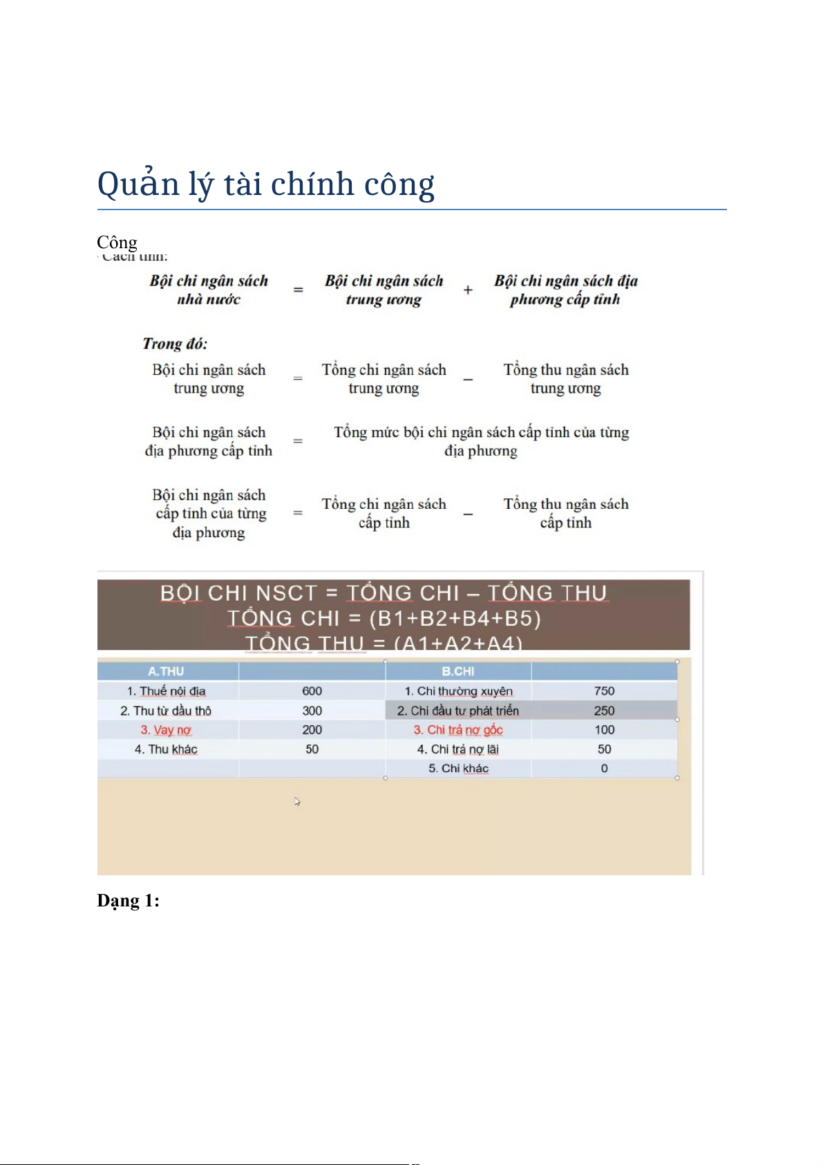 Quản lý tài chính công Công Dạng 1: