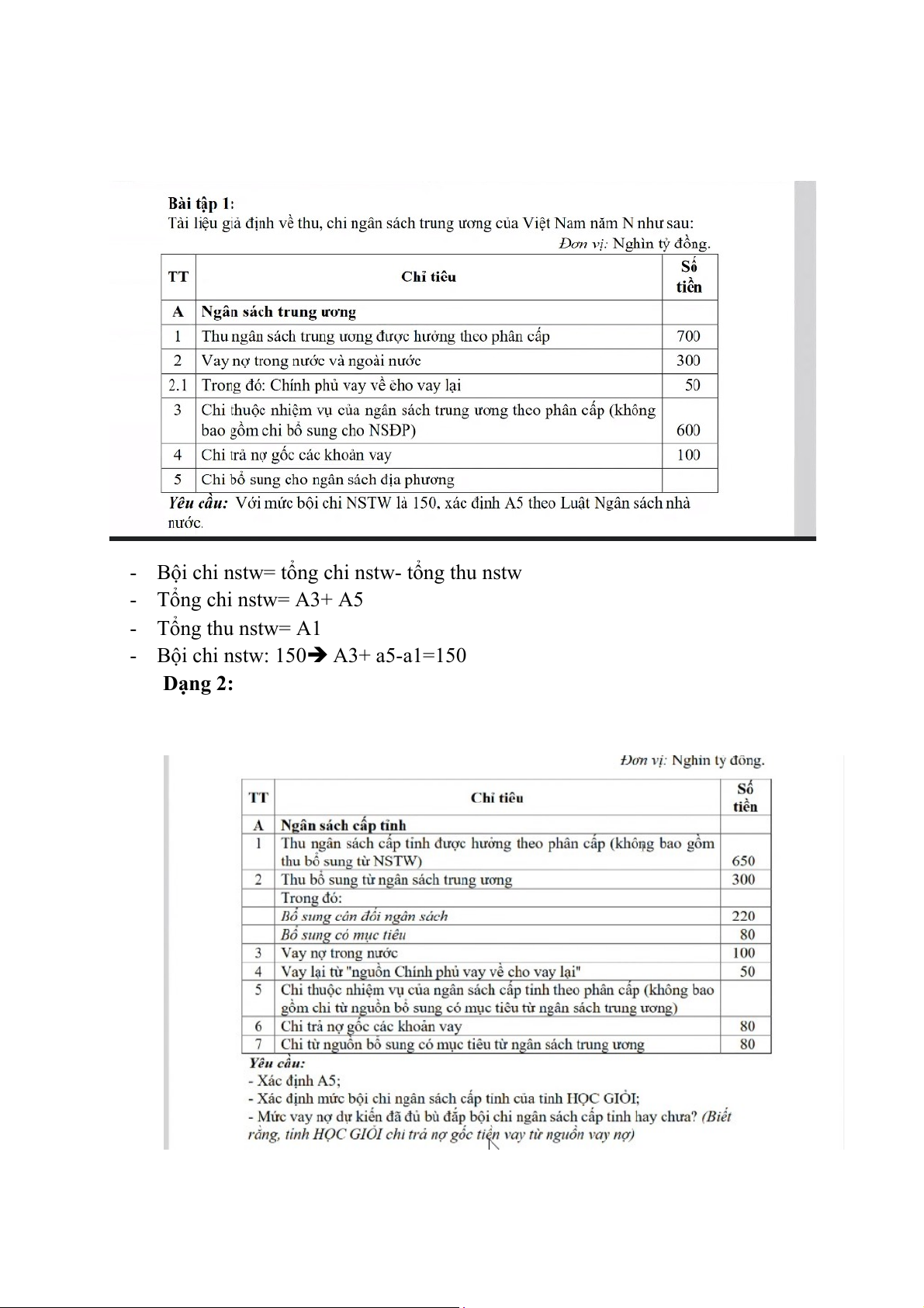 - Bội chi nstw: 150 A3+ a5-a1=150 Dạng 2: A1+a2+ a3+a4= a5+a6+a7 A5 Tổng chi nsct: A5