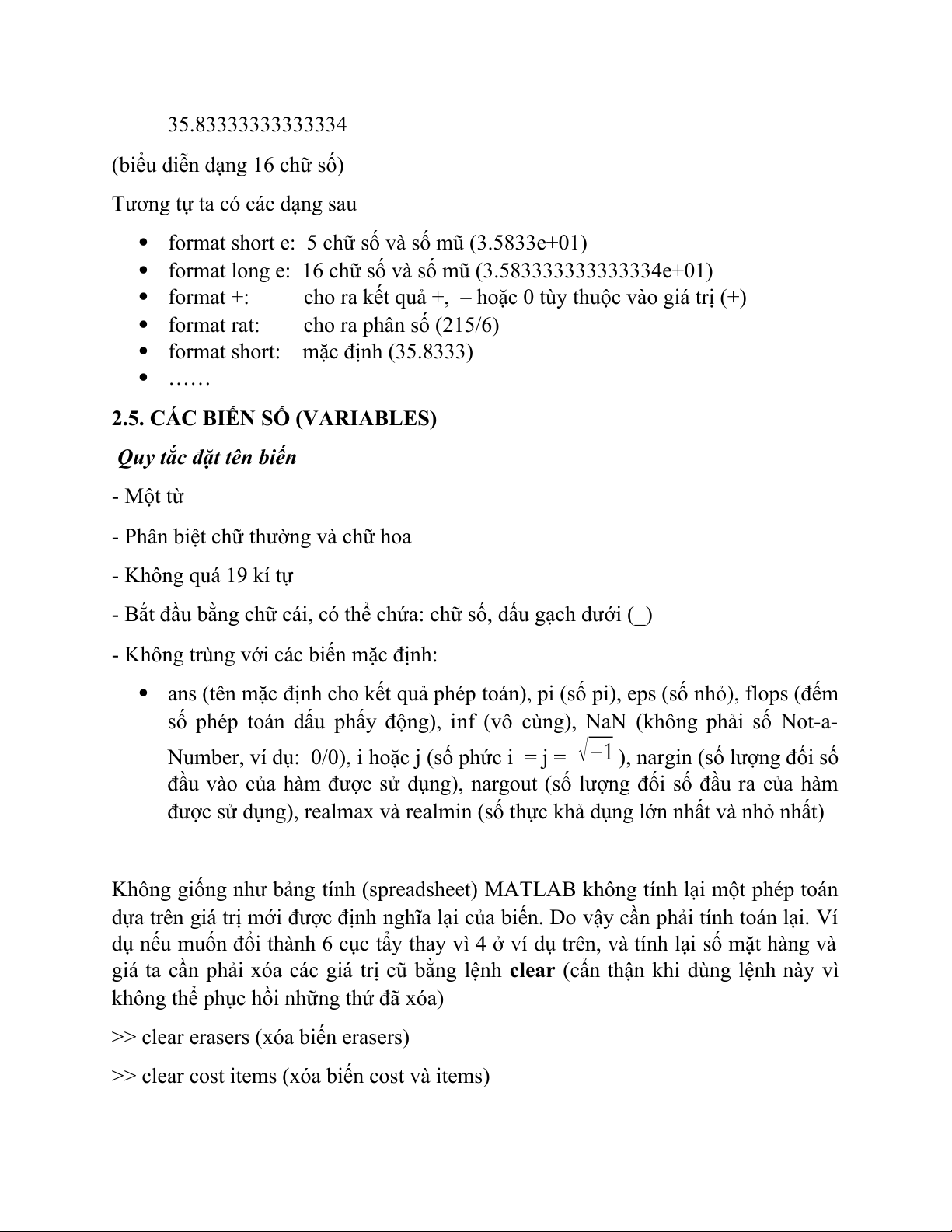 Câu lệnh này chỉ lưu trữ biến erasers vào tệp data1.mat 2.4. ĐỊNH DANG SỐ